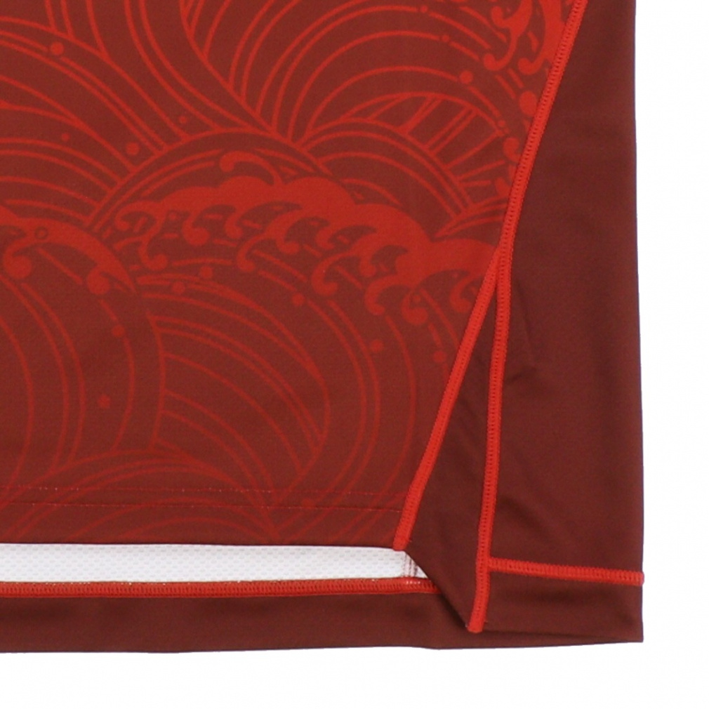 ジャージカラーの「赤」は、これまでの歴史に対する尊重を表現しており、ボディにあしらわれた波の柄は釜石ラグビーにとっての象徴である「富来旗(ふらいき)」の波を模したデザインとなっています。