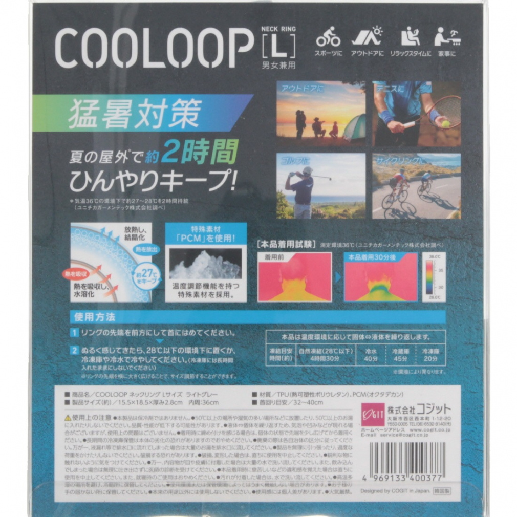 ■保冷効力:気温36℃の環境下で約27℃~28℃を2時間持続