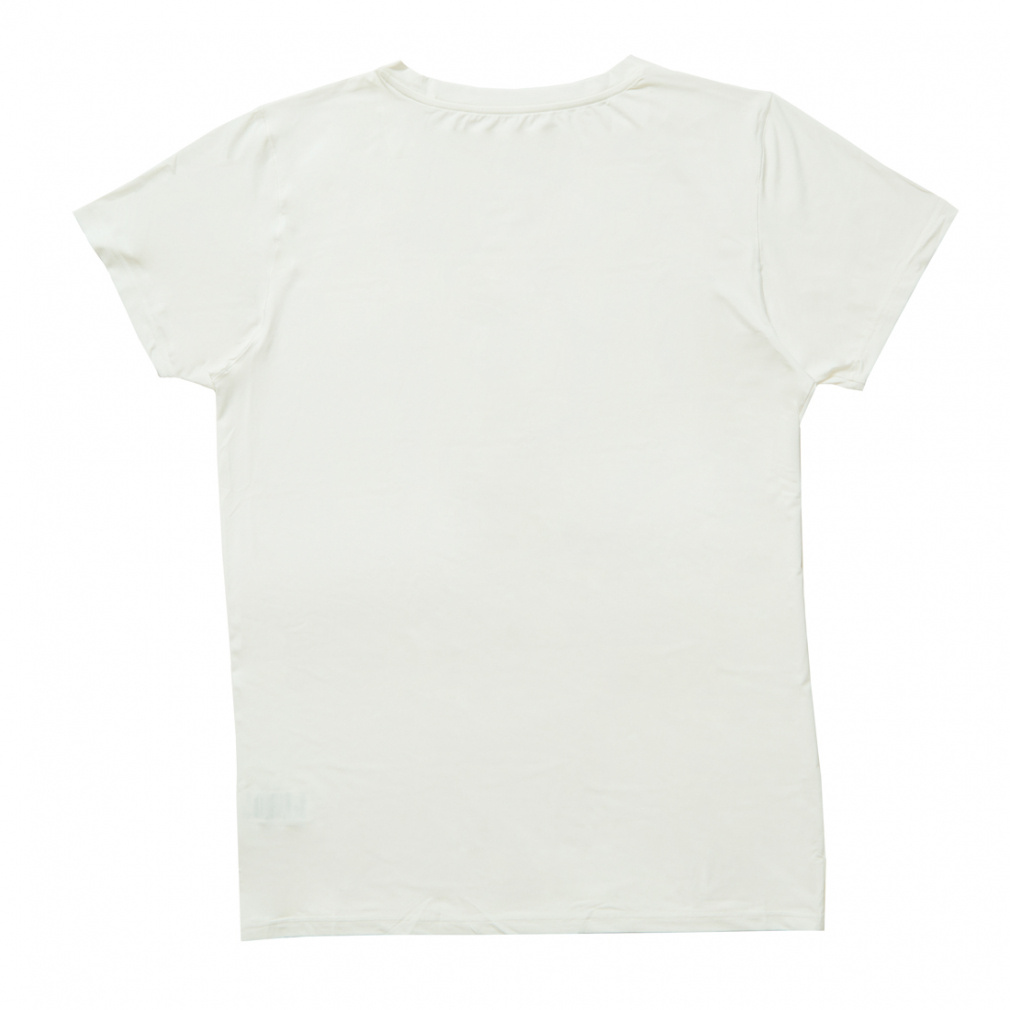 クルーネックの襟元が見えても見栄えがきれいなロック付け襟仕様。