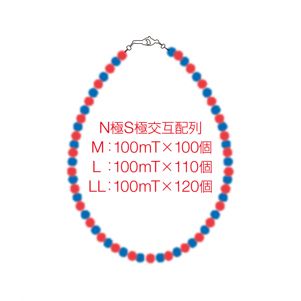 ◇従来の「ネックレスLUCE」よりも磁力の高い100mT(1000G)のフェライト永久磁石を使用
