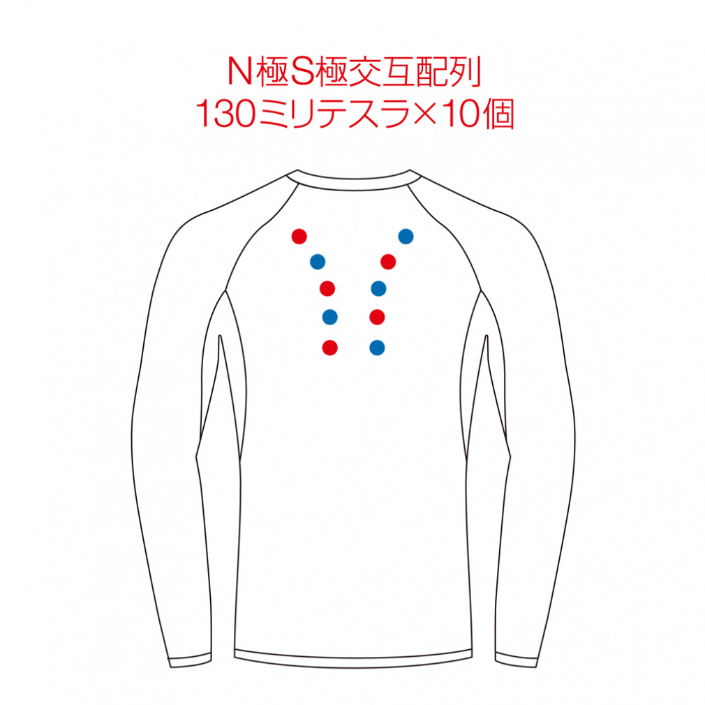■素材: シャツ本体 ポリエステル80%/ポリウレタン20% メッシュ部 ポリエステル86% ポリウレタン14% 磁石 フェライト永久磁石130mT(1300G)10個をN極S極交互配列