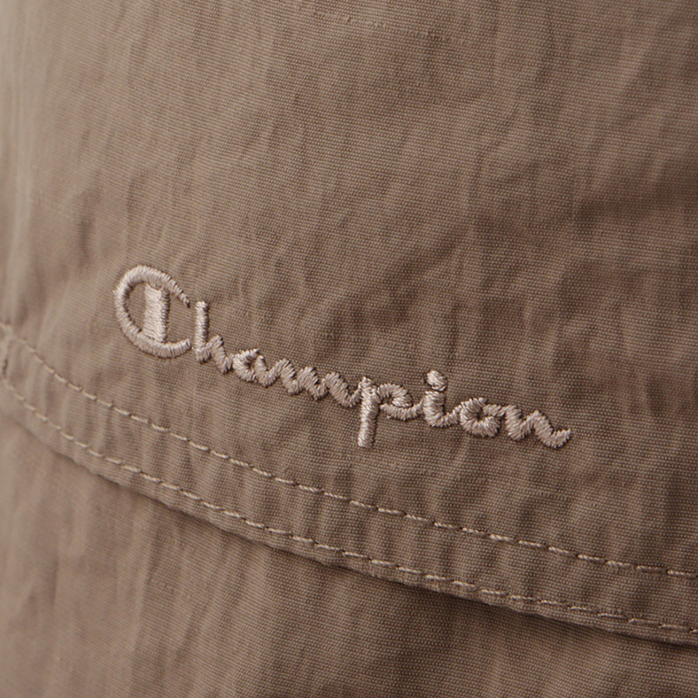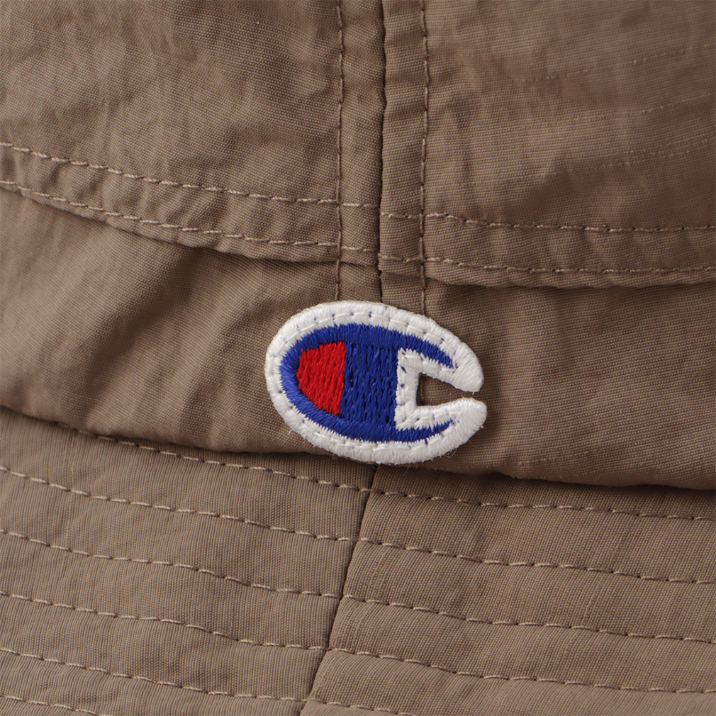 フロントに生地と同色のChampionスクリプトロゴ刺繍を施しており、取り外し可能なコードとサイズ調整ストッパー付き。