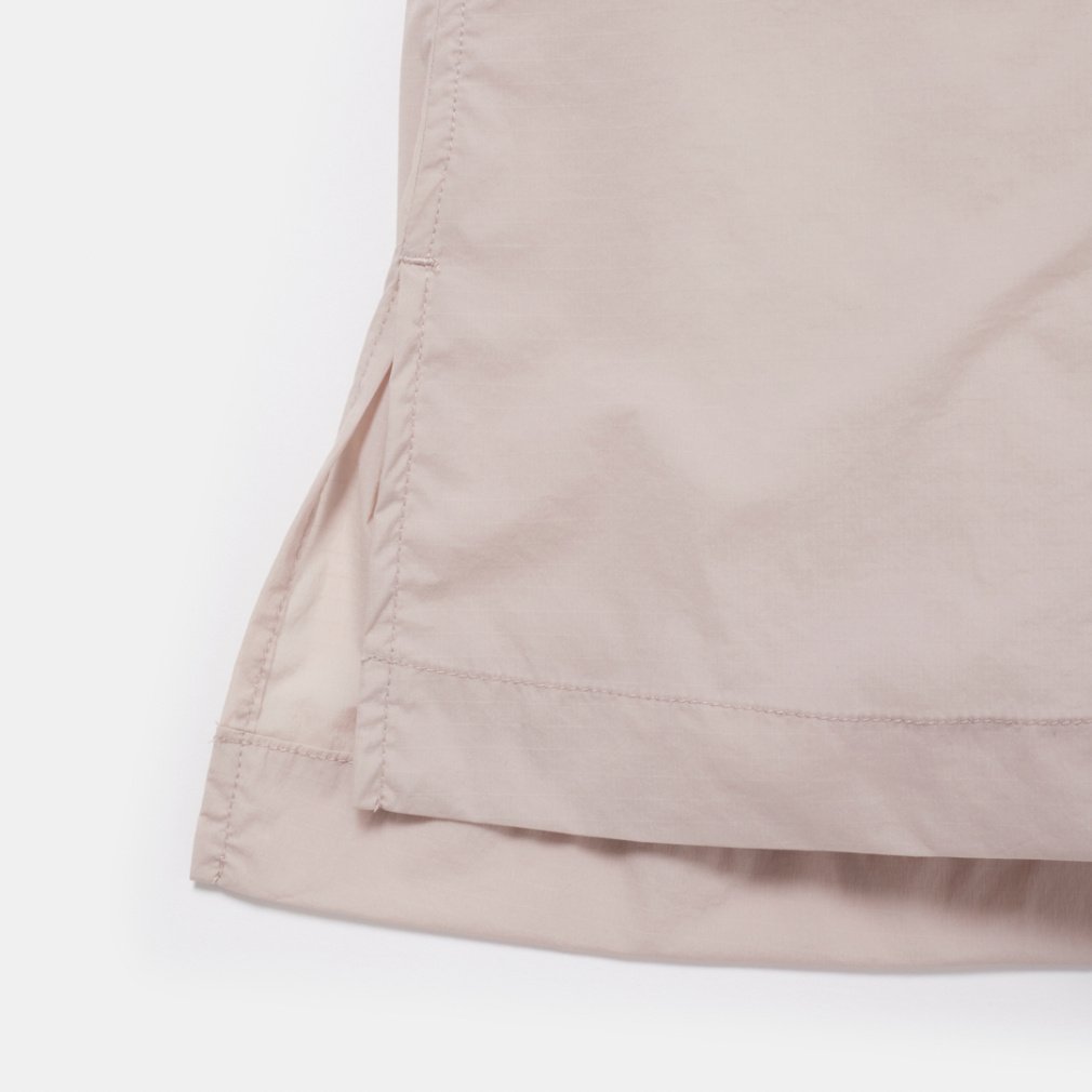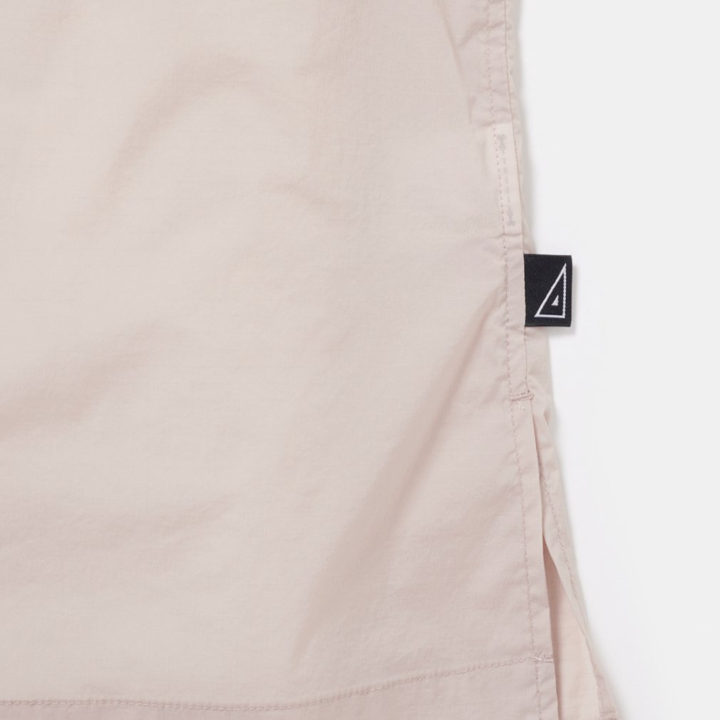 ◇厳選した15デニールの糸で織り上げた、軽量のオープンカラーシャツ。デニールとは糸の太さを示す単位で、9000メートルあたりの糸の質量をグラム単位で表したもの。つまり15デニールは、9000メートルで15グラムとなり、非常に細く繊細な糸になります。そこに縦横の引っ張りに強いスパンデックスを合わせ、軽量かつストレッチ性の高い生地を織り上げました。たたむと手のひらに収まるほどコンパクトになる携行性の高いボディには、夏に嬉しい吸水速乾機能も搭載。カラーは軽やかな、グレイッシュピンク、ネイビー、カーキの3色展開。