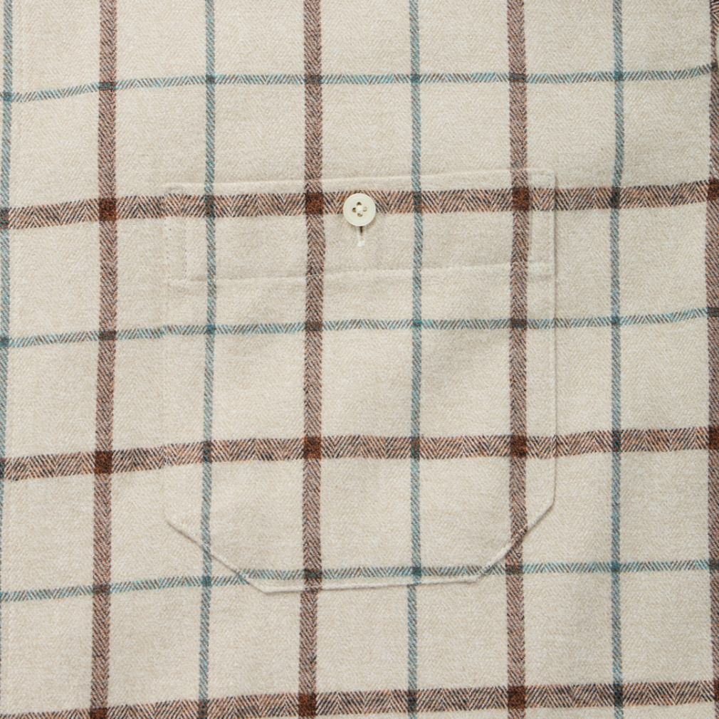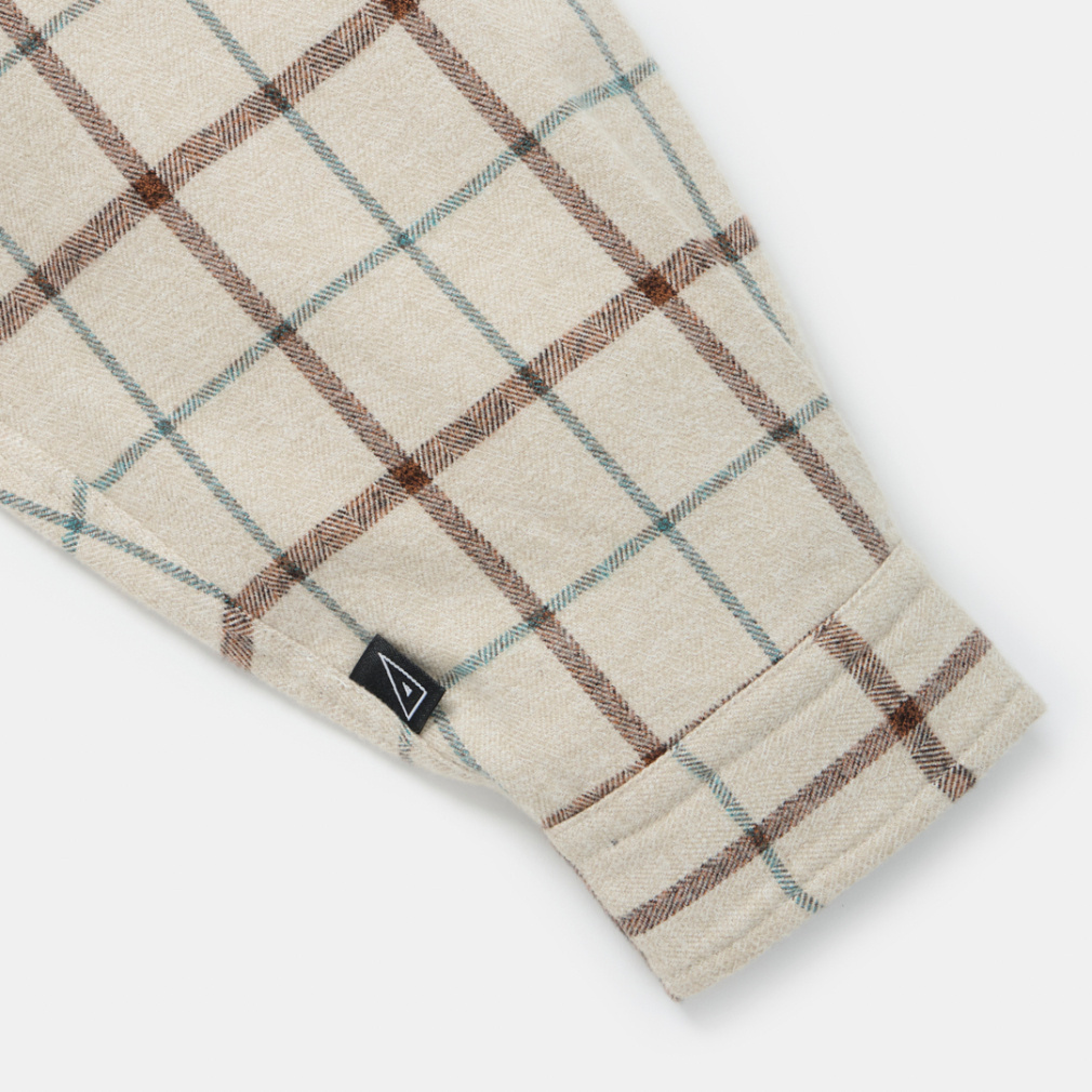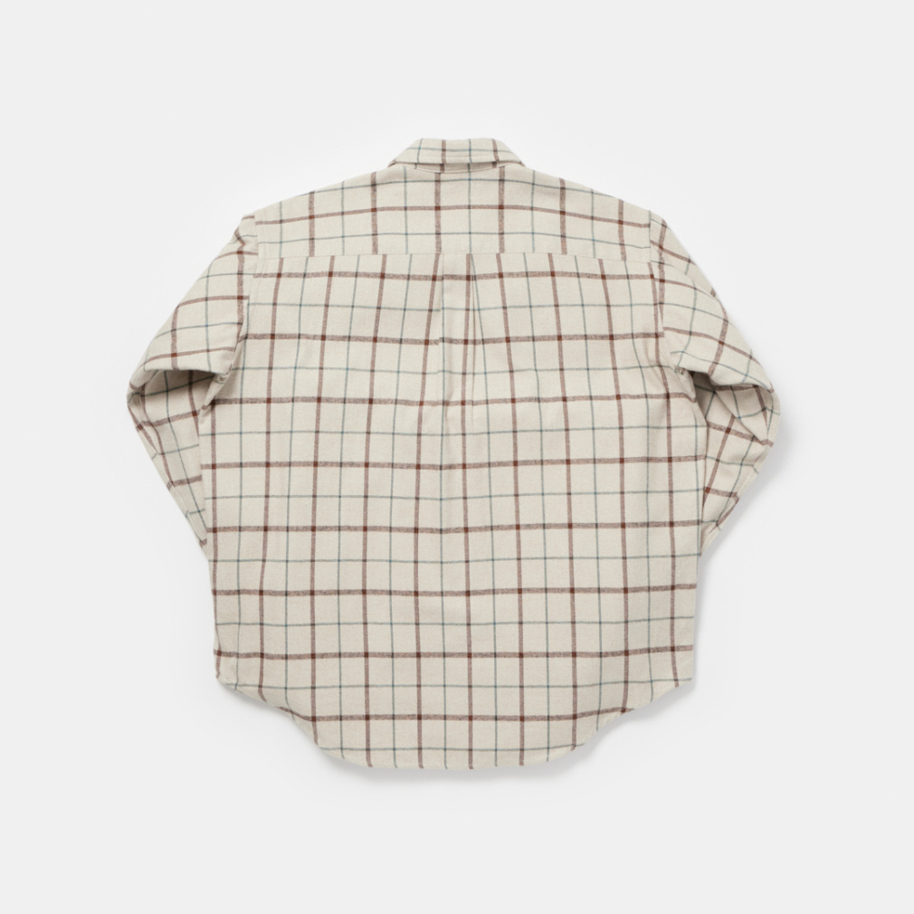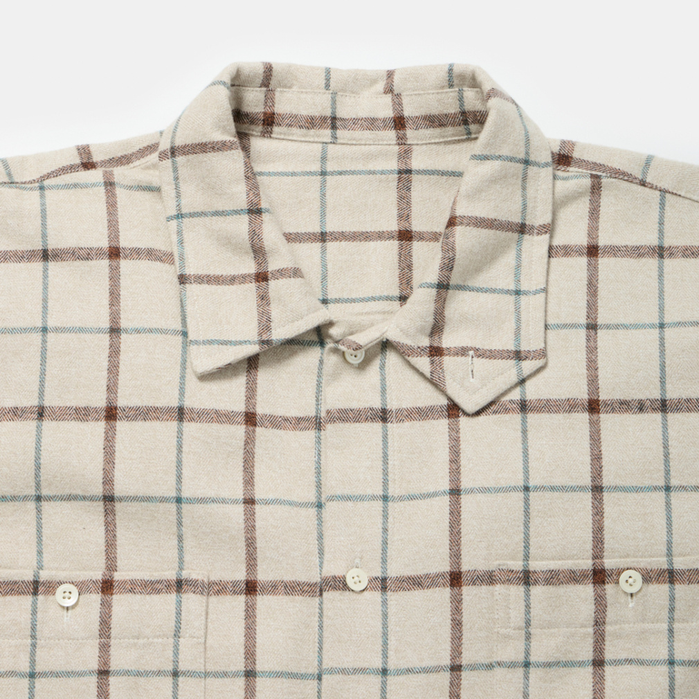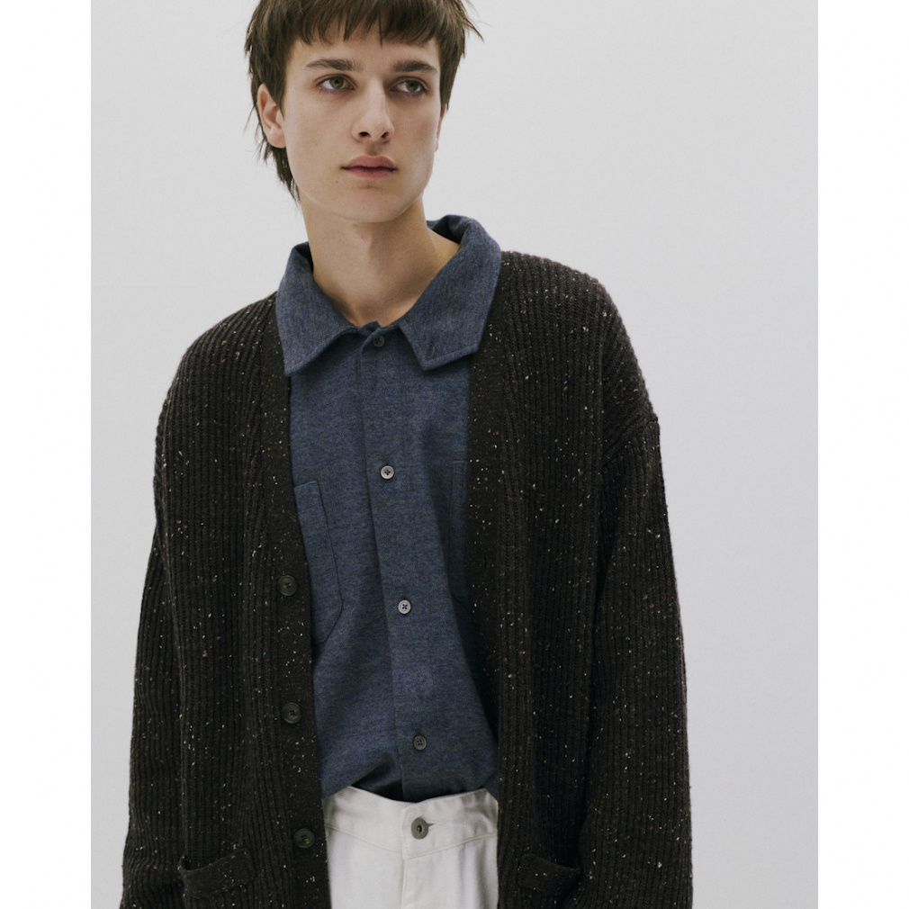 ◇メランジの風合いが美しい、オーバーサイズネルシャツ。絶妙な同色系の配合で、立体感があり奥行きのある見た目になっています。衿は釦が付いており、立てて着用することも可能な仕様に。アウターとしてもインナーとしても着られるデザインにすることで、使い勝手の良いアイテムになっています。上着のインナーに着る時は、首元から見えるメランジによりコーディネートに深みを与え、アウターとして着た時も左右に付いた釦付きの胸ポケットがいいアクセントに。カラーは、ベージュとグリーンがチェック柄で、ネイビーが無地柄の3色展開。