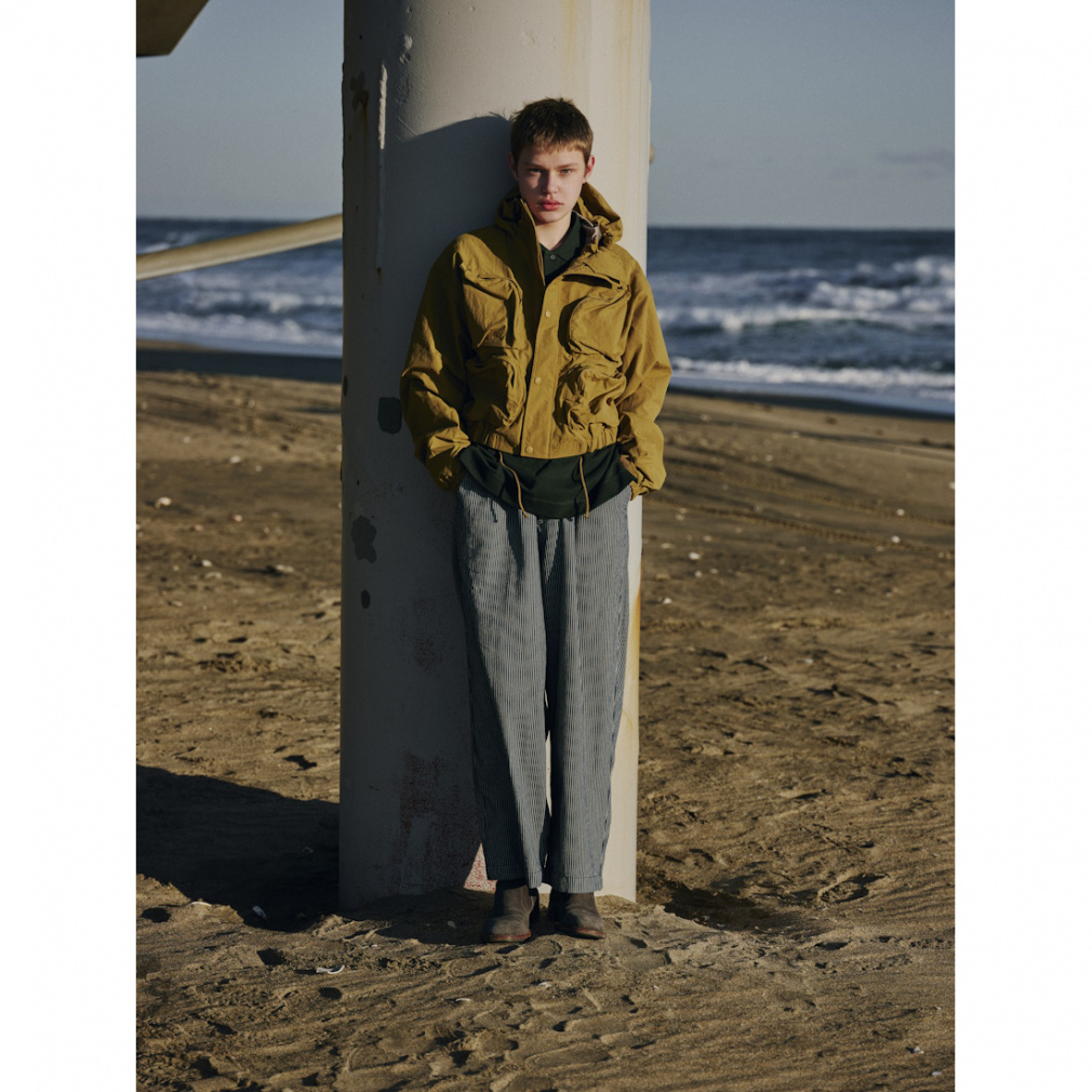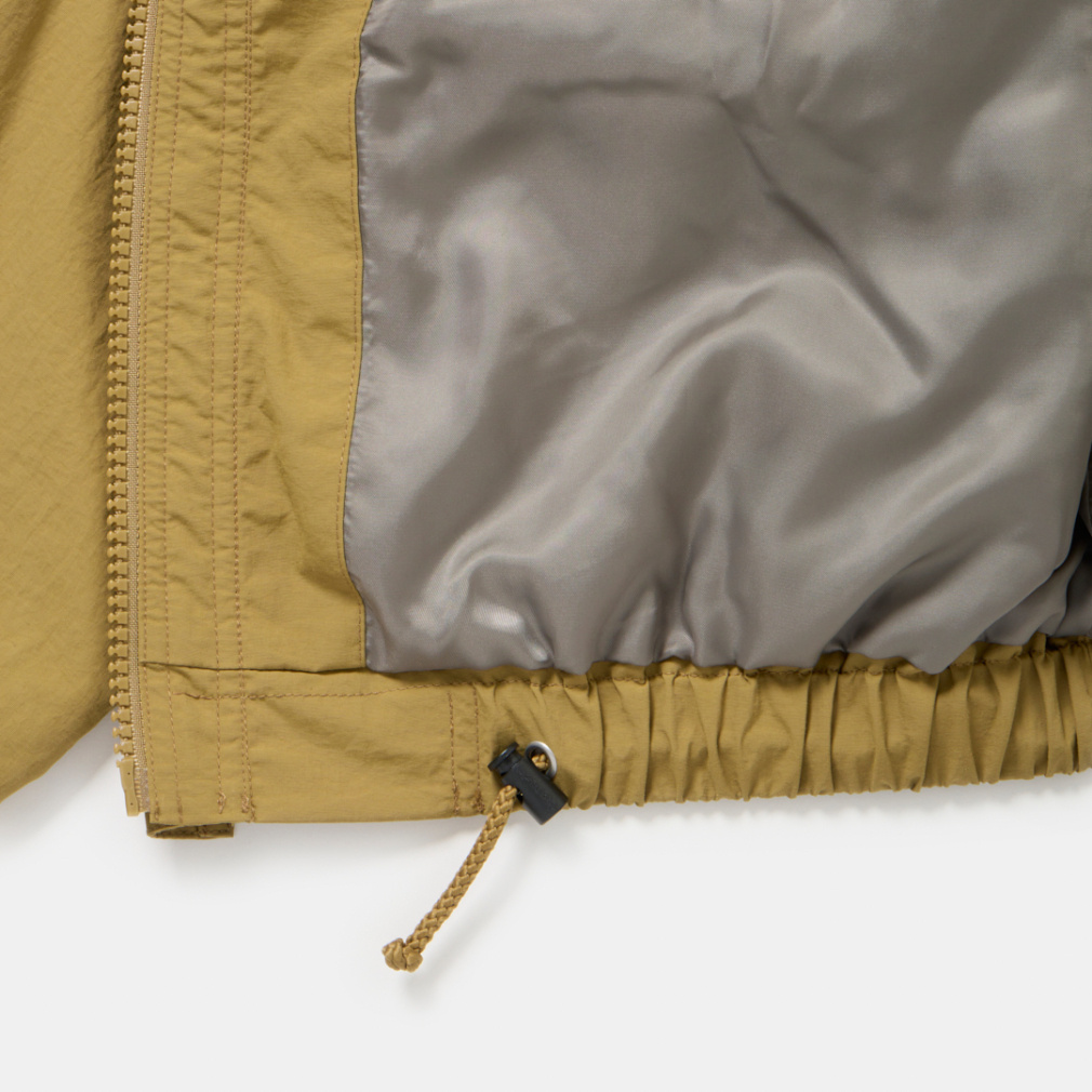 ◇80年代のフィッシングジャケットをTRIANTANらしい現代的なディテールで再構築した一着。素材は裏面にアクリルコーティングを施し、防風機能、撥水機能、UVカット機能を持たせたナイロンタスランタフタを使用。高機能素材ながら、フルダル糸を使用しているため、クラシカルな表情に仕上がっています。デザインは元々のフィッシングジャケットが水に濡れないようショート丈にしてあったバランスを残しつつ、リサイズ。特徴的なマルチポケットはそのままに、現代的なシルエットに整えました。カラーは、サンド、オリーブイエロー、ブラックの3色展開。