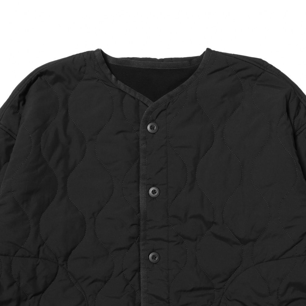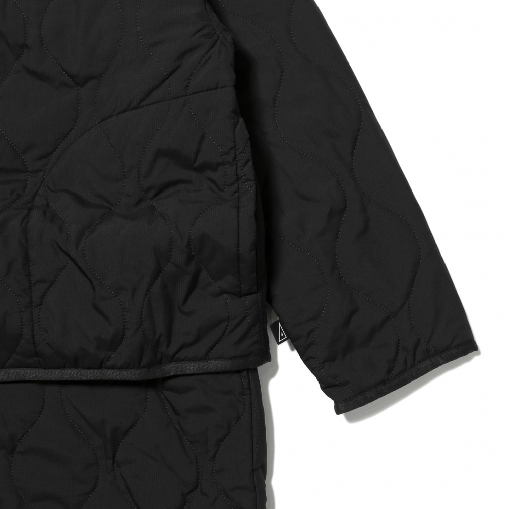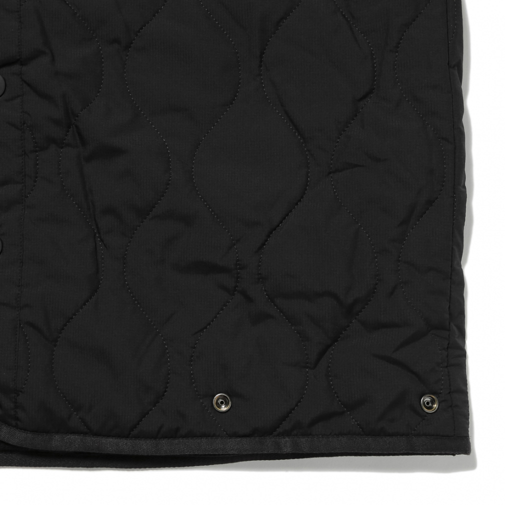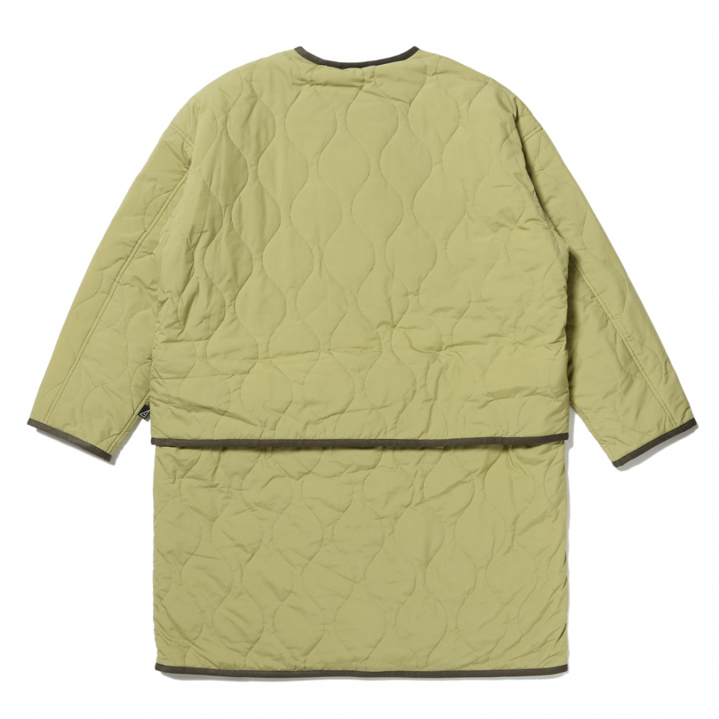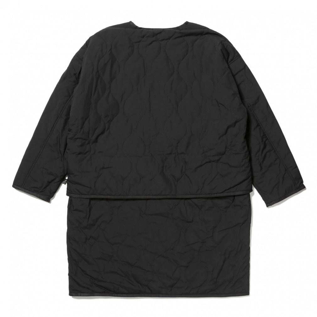 ◇M-65のキルティングライナーをモチーフに、現代的なギミックを追加した一着。表側には撥水加工を施した20Dリップストップ、裏側には肌触りの良いマイクロフリースを使用し、リバーシブルに着用できます。また腰のボタンを外すことにより、ショート丈としても着用可能な一着になっています。さらに外したパーツは、裾のドットボタンによりストールのように羽織ることも可能。着用者によって、5パターンにも6パターンにも着こなしが楽しめる、マルチウェイコートとなります。