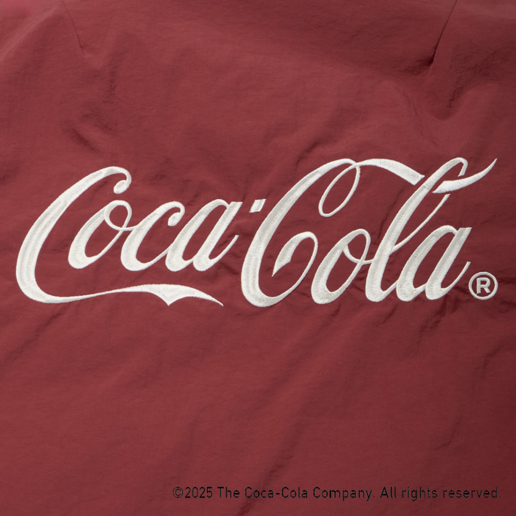 ◇背面にCoca-Colaのロゴを大胆に刺繍したコーチジャケットが新色と共にリストック。クラシカルな表情が特徴のナイロンタスランタフタは、裏面にアクリルコーティングを施し、軽さの中にも耐久性と撥水機能、UVカット機能をプラス。冷たい風も防ぐので、裏地のボアフリースと相まって、非常に高い保温力を持った一着となっています。袖裏には腕通しの良い裏地を使用していますが、中わたを封入し防寒性の面で抜かりのない仕様に。カラーはグリーンとブラックに、今シーズンの新色、ボルドーとネイビーを加えた4色展開となります。