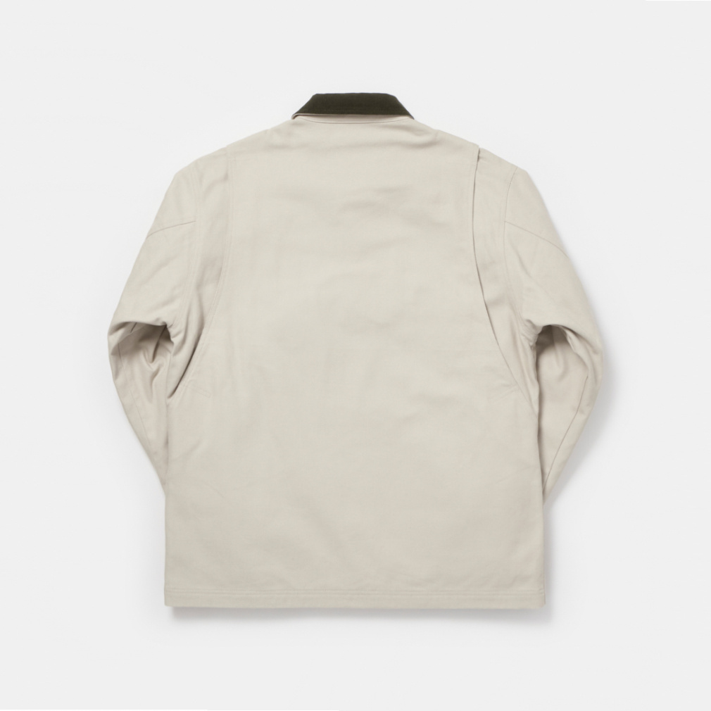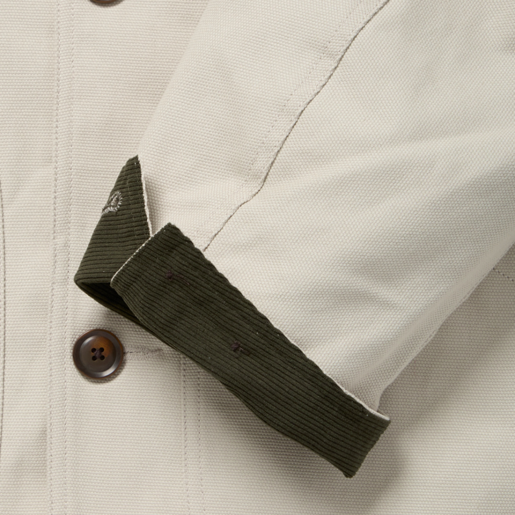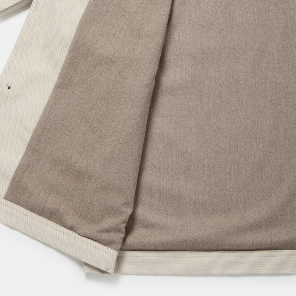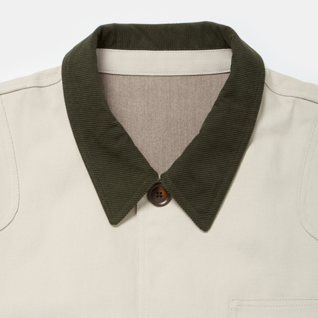 ◇クラシカルなハンティングコートを現代的なシルエットで再構築した一着。素材は、非常に頑丈なヘビーオンスのダック生地を採用。高密に織られているため、摩耗に強く、保温性を持ち、水や汚れもはじきやすいという特徴をもった素材となります。タフな環境下でも活躍する性能は、ワークウェアでは古くから使用されている実績を持ちます。カラーは、カーキ色のコーデュロイ衿が特徴のサンドと、ソリッドでまとめたディープグリーンの2色展開。使い込むほどに色合いや風合いが変化し、着用者の体に馴染んでいき、経年変化を楽しめる一着となっています。
