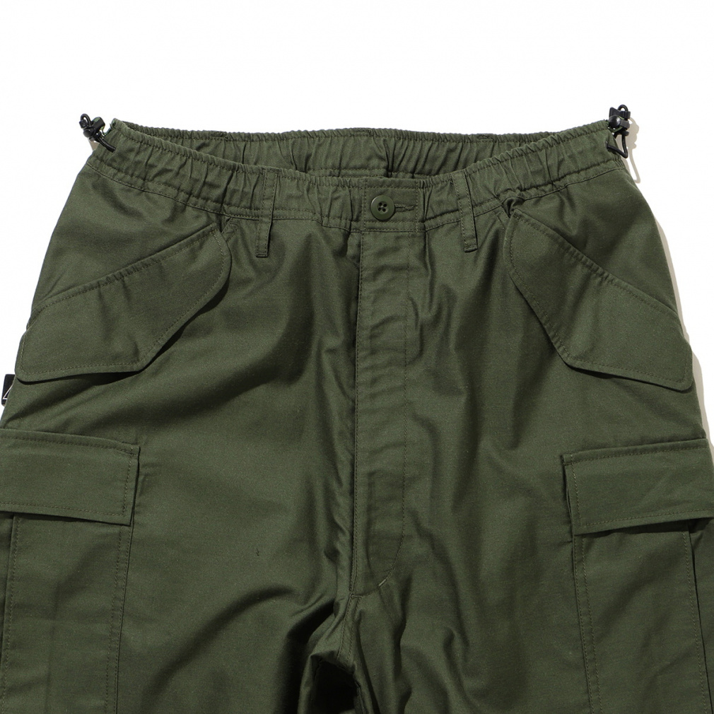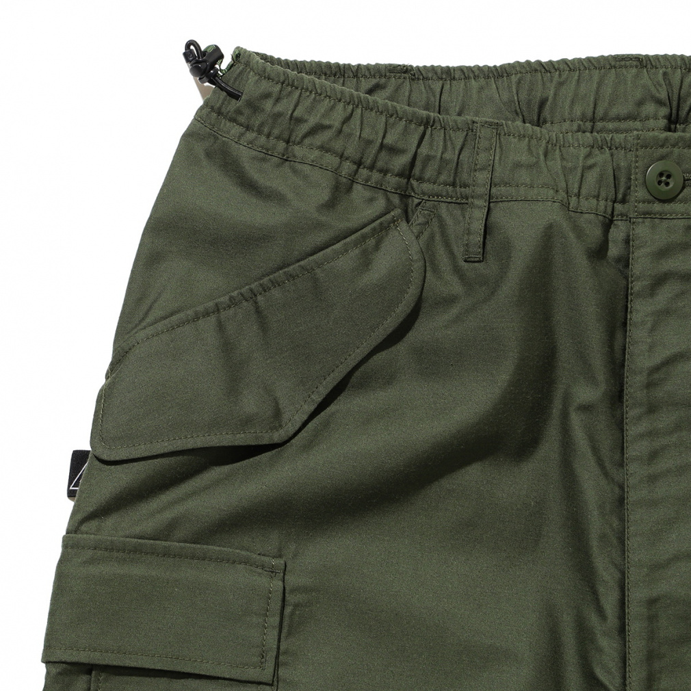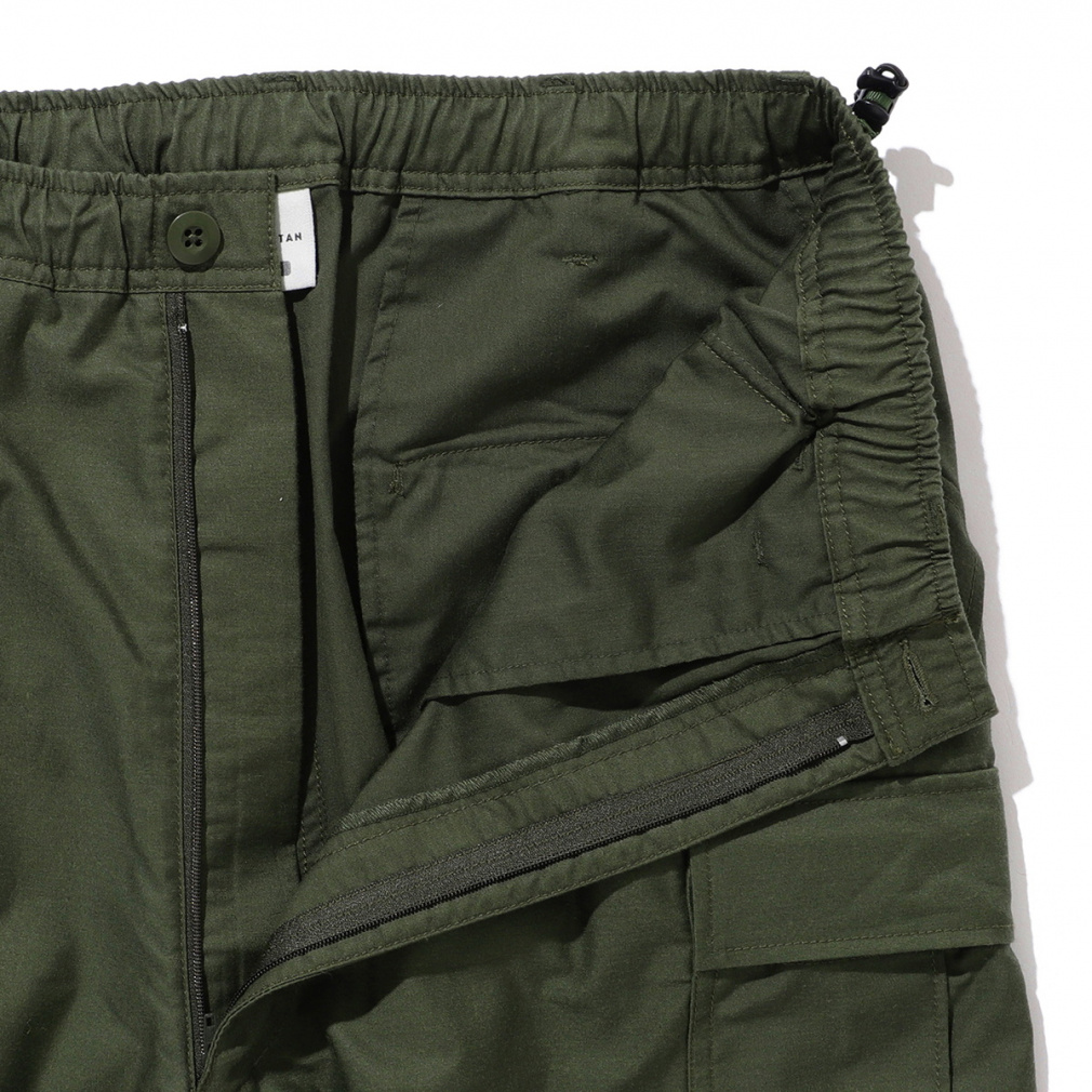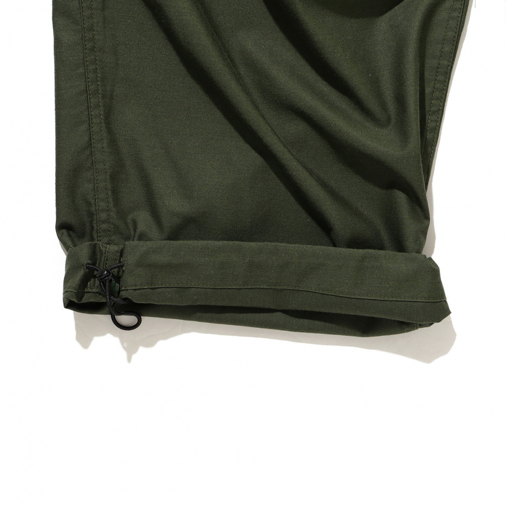 ◇ライトウエイトのバックサテンを採用。ポリエステルコットンの混紡糸を使用したカーゴパンツ。軽さとストレッチ性を兼ね備えたパンツなので、タウンユースにおすすめです。ウエストはゴム仕様でサイドのアジャスターで調節が可能。また、サイドにほどこされたピスタグが、着こなしのさりげないアクセントにもなります。