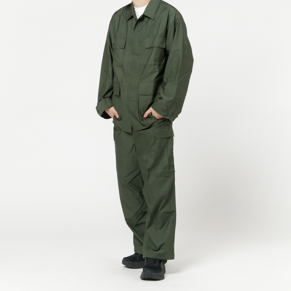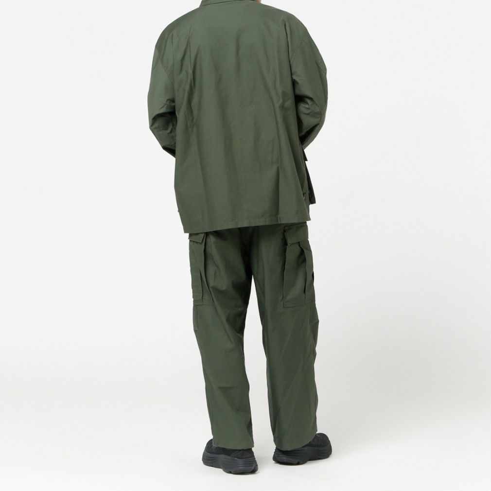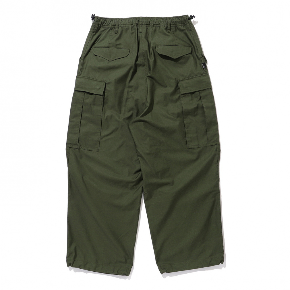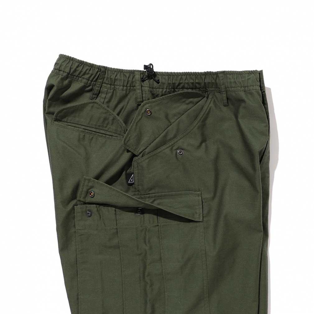 ◇ライトウエイトのバックサテンを採用。ポリエステルコットンの混紡糸を使用したカーゴパンツ。軽さとストレッチ性を兼ね備えたパンツなので、タウンユースにおすすめです。ウエストはゴム仕様でサイドのアジャスターで調節が可能。また、サイドにほどこされたピスタグが、着こなしのさりげないアクセントにもなります。
