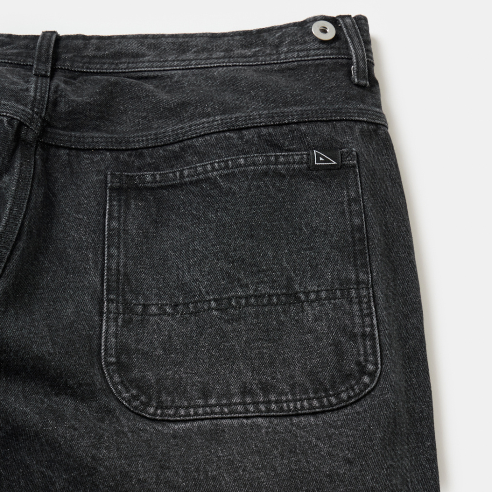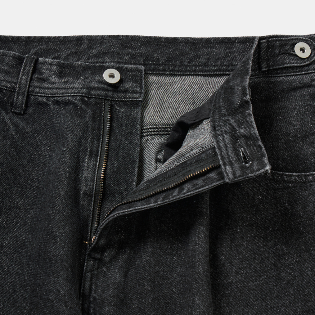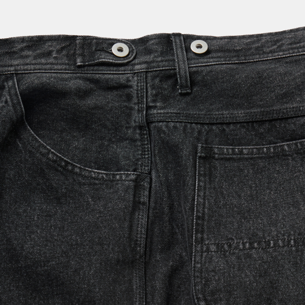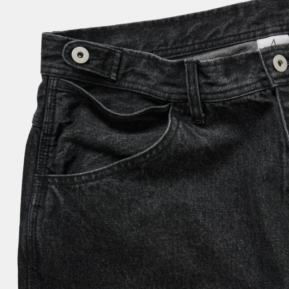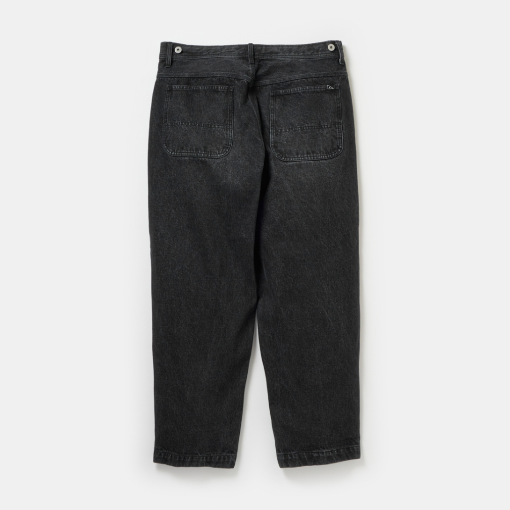 ◇軍パンのディテールをモチーフにした、サイドのタブが特徴的なコットンワークパンツが新色と共に登場。サイドのタブは、ウエストサイズが3段階で調整できるギミックになっています。シルエットは時代に合わせて、わたり巾を広くとったワイドシルエットに変更し、すっきり見えるよう緩やかなテーパードをかけました。ネイビーとダークグレーはデニム、オフホワイトとブラックは極太のカツラギ素材を使用し、綺麗めワークスタイルをコンセプトに製作しました。同素材のカバーオールジャケットと合わせて、肩肘を張らない大人のセットアップスタイルに。