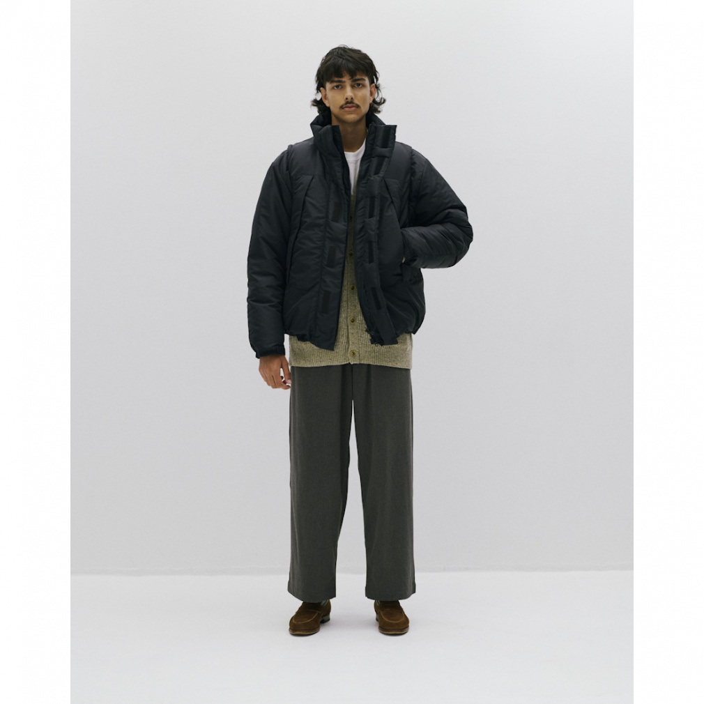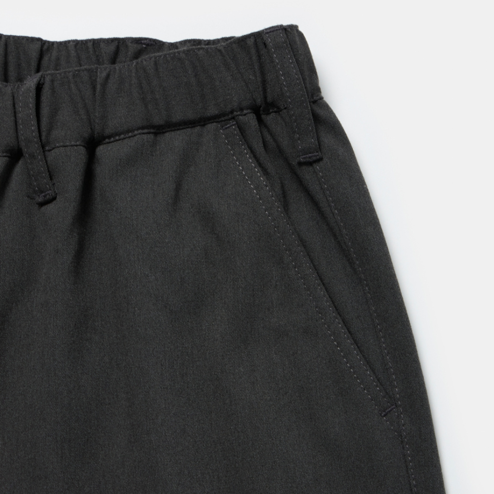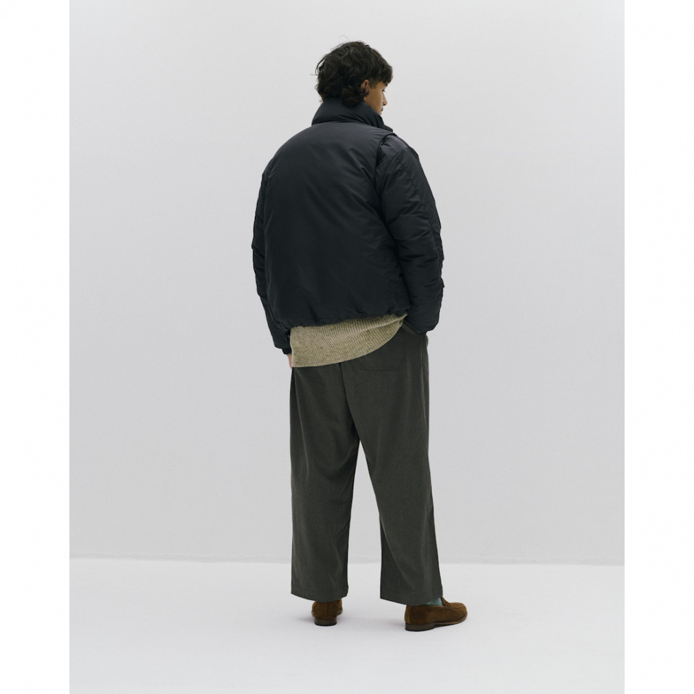 ◇TRIANTANの定番商品、ワイドイージーパンツが新素材で登場。ポリエステルとレーヨン、ポリウレタンを掛け合わせたツイル素材は、杢調の色目が美しく、スラックスのように綺麗めに履きこなすことも可能。ウールのような見た目ながら、伸縮性や乾きやすい特性も持ち、扱いやすい1本となっています。裾にかけて巾を広く持たせたバギーシルエットは健在で、柔らかくドレープ性に富む生地と相性抜群。ウエストはゴムとスピンドルが入った仕様で、ベルトレスで着用可能になっています。カラーは、上品な杢調が際立つ、グレー系2色の展開となります。
