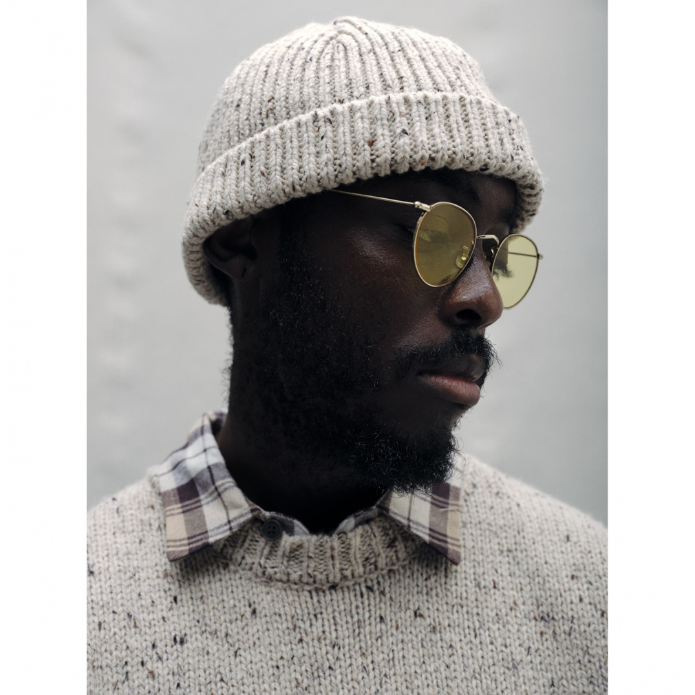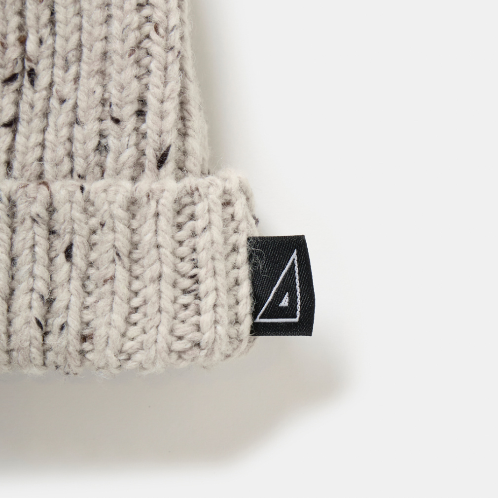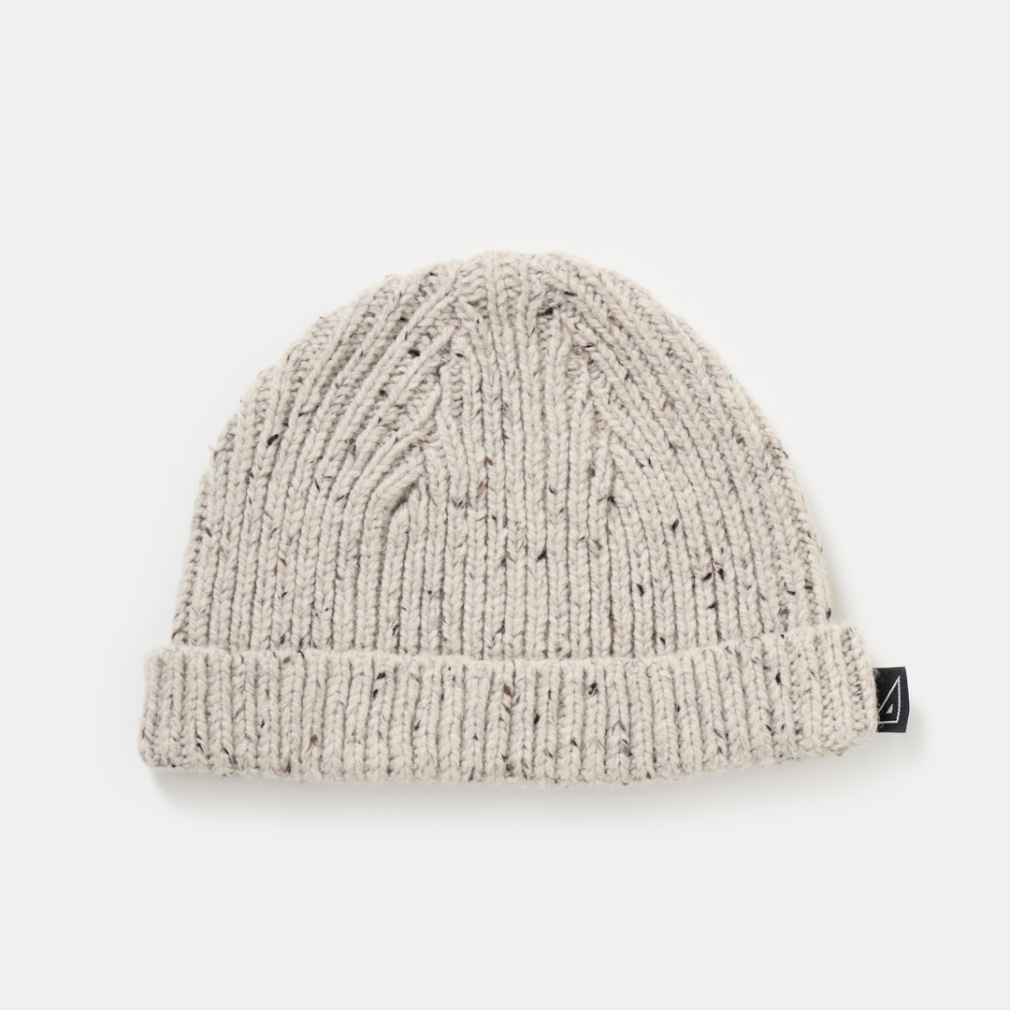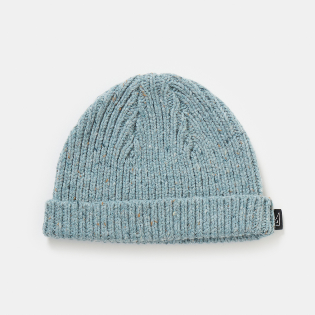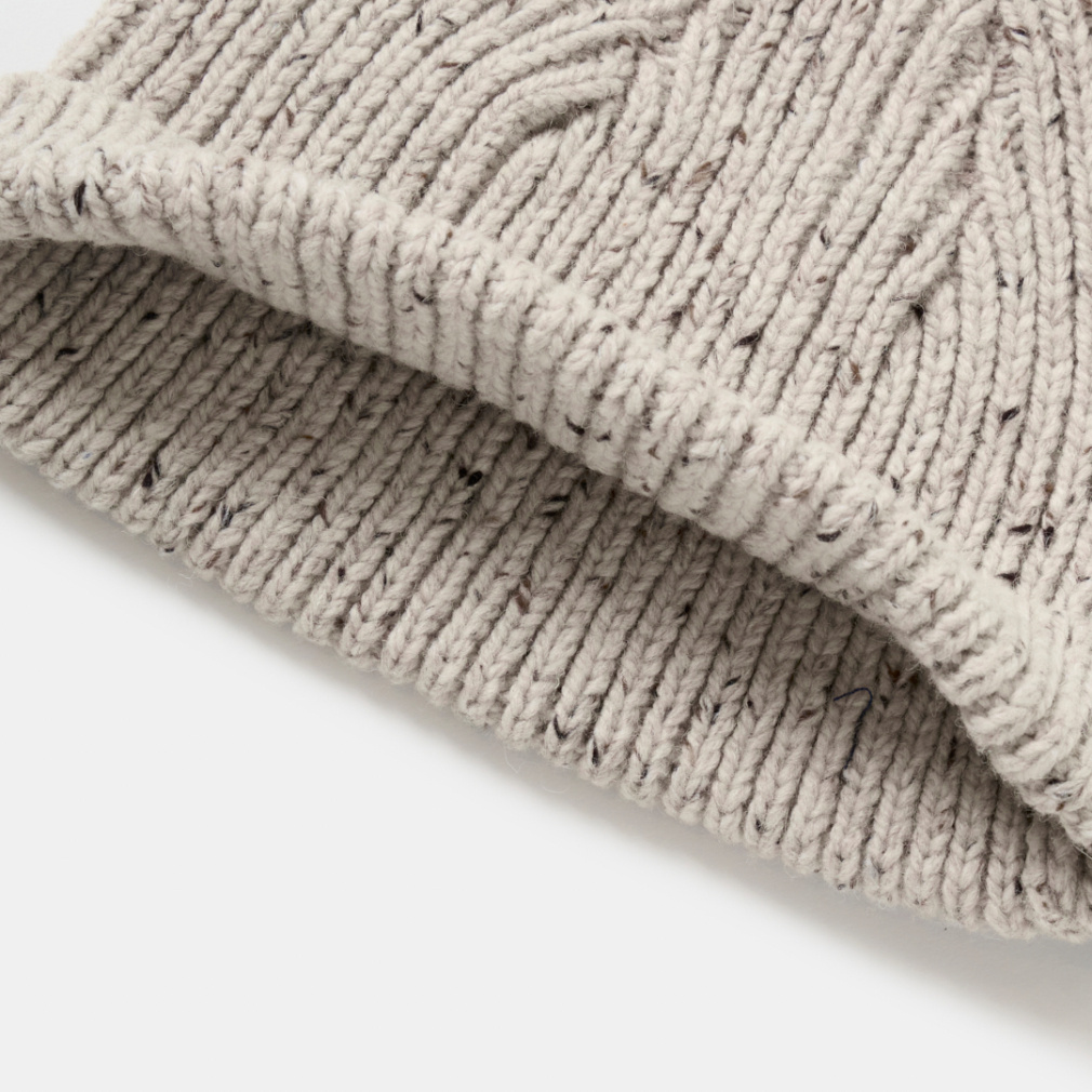 ◇数種類の色のネップが入った糸で編み上げたショートニットキャップ。老舗のニットメーカーと提携し、一から作りあげたTRIANTANの新ニットシリーズになります。ウールとアクリルの混率を調整し、しっかりと膨らみがありながら、見た目よりも軽い仕上がりに。バランスに徹底的にこだわり、誰がかぶっても、どんな頭の形の方がかぶってもスッキリと見える寸法に設計しました。折り返しをつけ、どんなスタイリングも合うフォルムに。カラーは、明度を落としたカラーネップによって着やすいトーンに調整した、ペールブルーとライトベージュの2色展開。