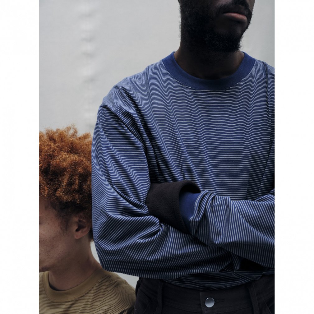 ◇TRIANTANの定番商品、ボーダーロンTが新色と共に登場。20番手単糸で編み上げた天竺を使用した、マイクロボーダーのロングTシャツ。通常の糸と比較して、格段に毛羽が少なく、光沢や滑らかさが特徴のコンパクト糸を使用。バイオ加工も加え、さらに毛羽の少ない光沢のある生地を実現。適度なハリコシがあり、身体の線を拾いにくいため、一枚でも着やすいTシャツになっています。ボーダーはどんなコーディネートにも合わせやすいマイクロピッチで製作。リラックスシルエットで、夏に嬉しいUVカット機能も備えるなど、一着は持っていたいアイテムになります。