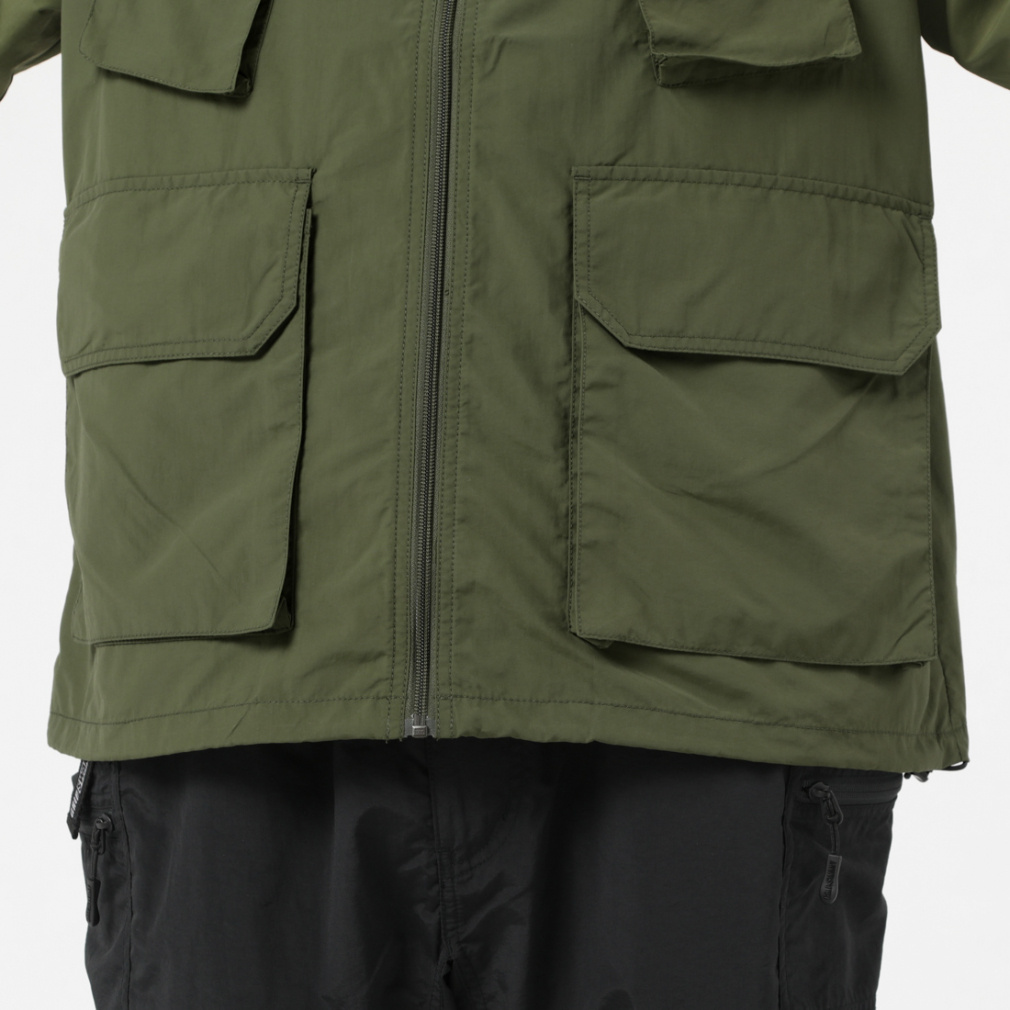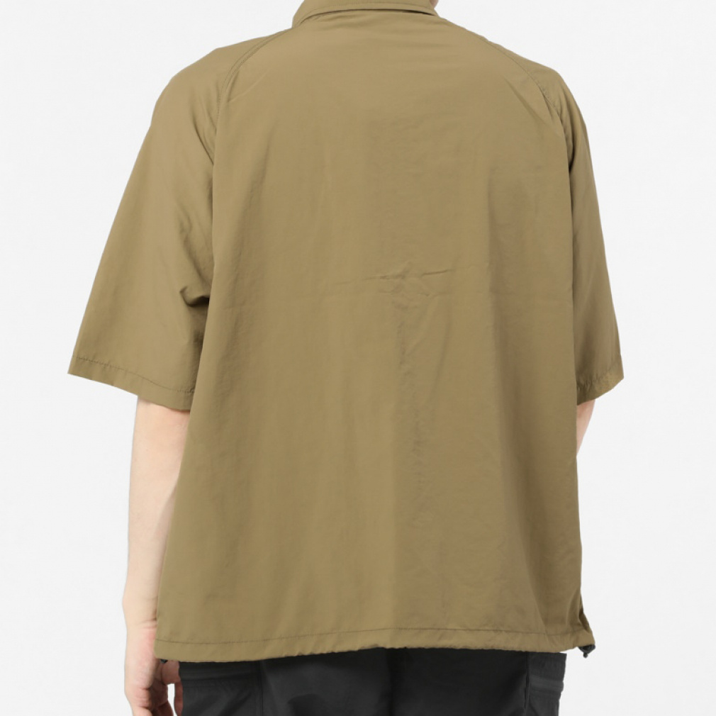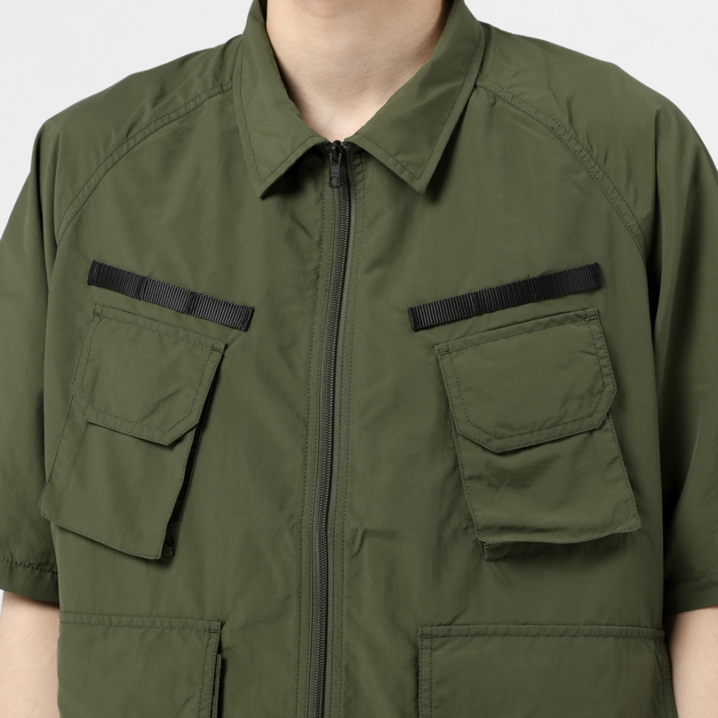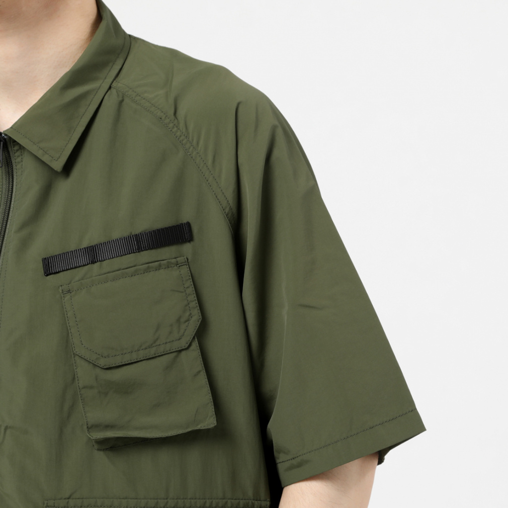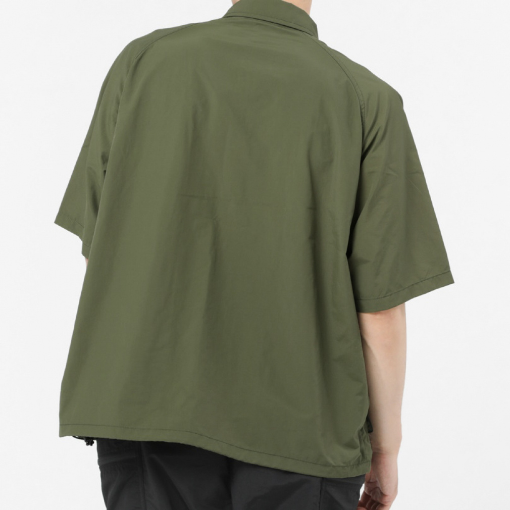 ◇サプレックスナイロンを使用したミリタリーテイストなシャツ。ドロップショルダーのビッグシルエットが特徴で裾にはドローコードが施され裾を自由に調節できます。マチの付いた大小のポケットがデザインされデイジーチェーンも胸上に搭載されています。襟は立てたりシャツの様に折ったり自分好みにアレンジ出来ます。