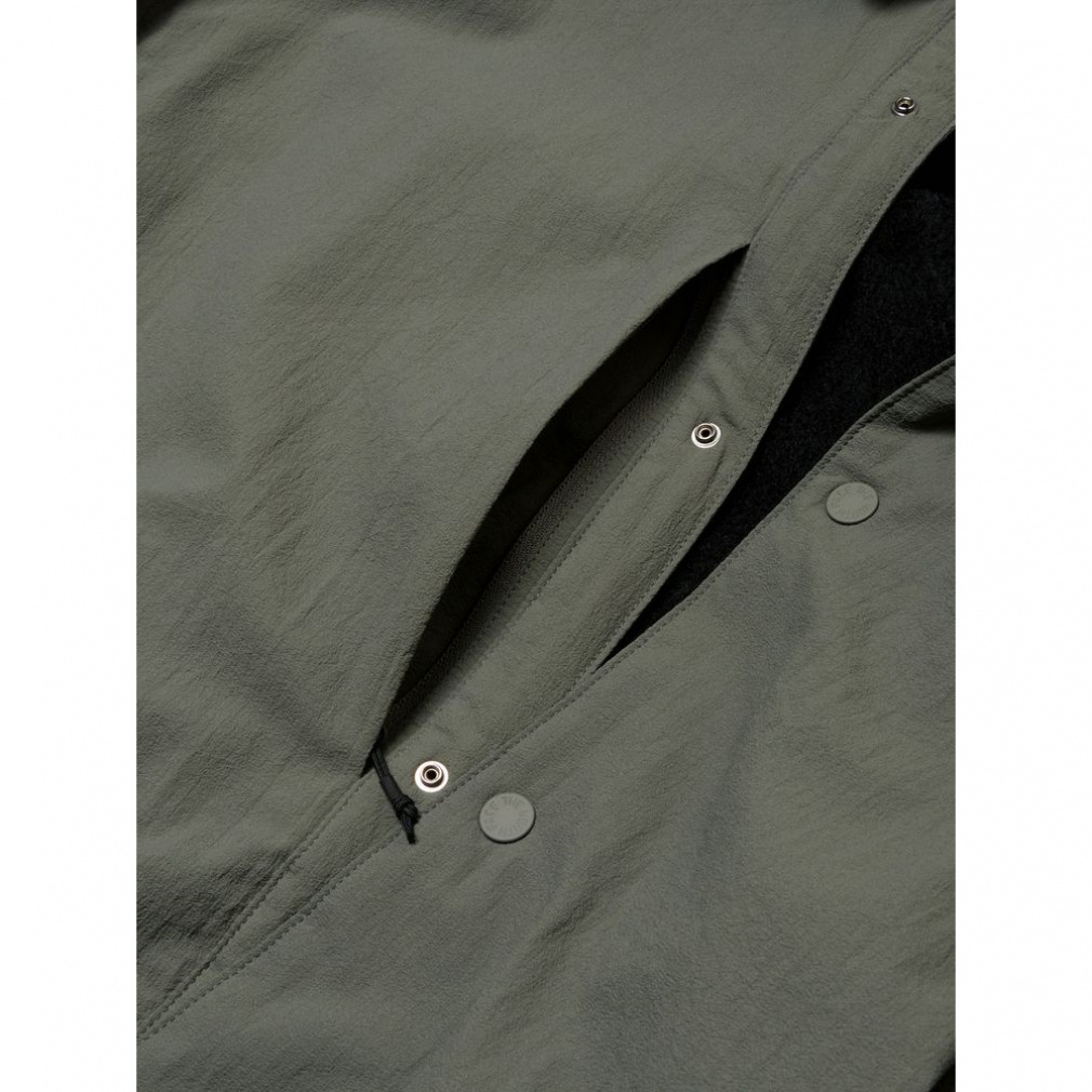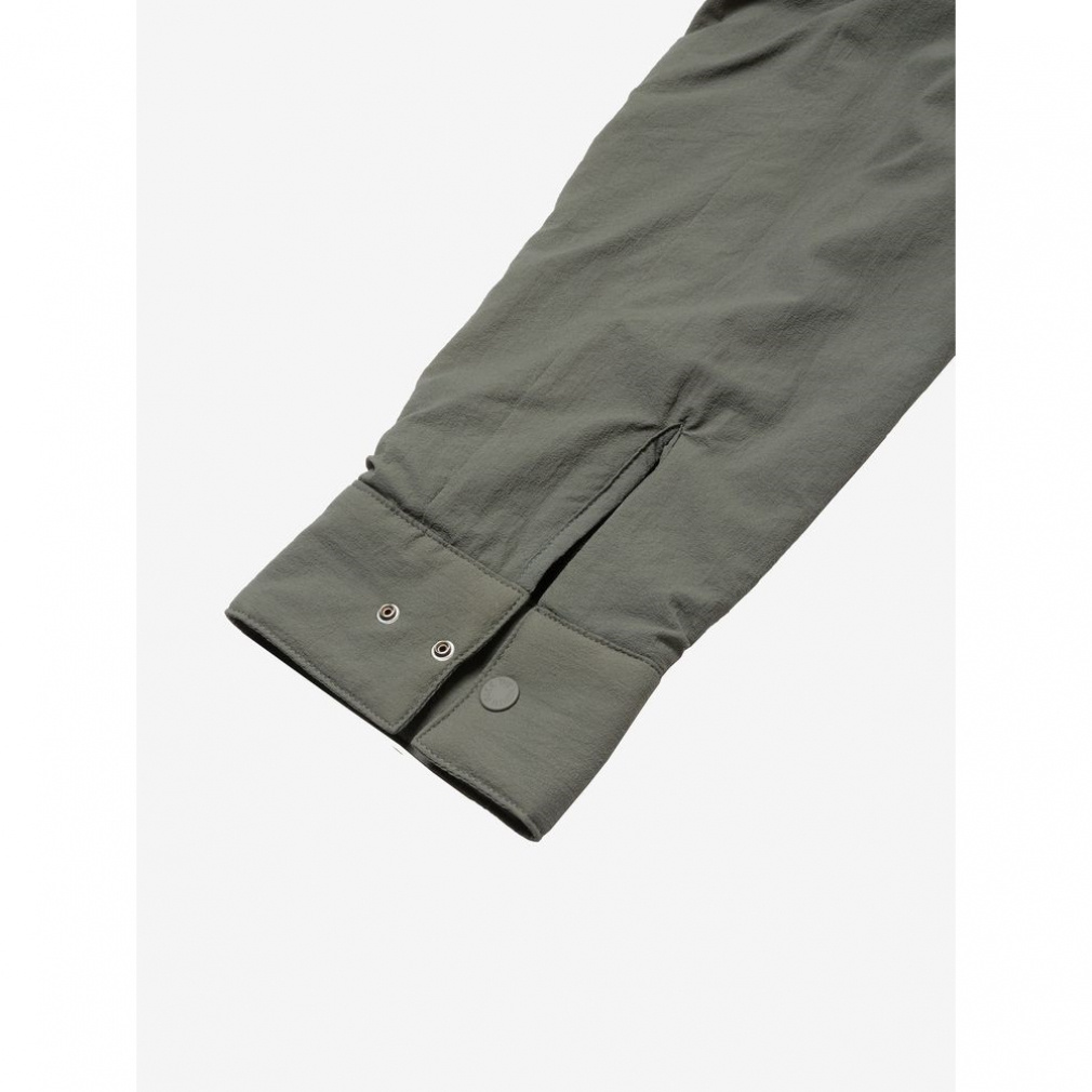◇ミドラーとして活躍するウールの山シャツから着想を得たソフトシェルシャツ。表地ははっ水性があり雪も付きにくいソフトシェル素材を採用。裏地は中空糸を使用したオクタフリース素材。身頃はふわふわとした起毛で、保温性とともに吸水性にも優れています。袖や脇部分は袖通しを考慮してフラットな面に切り替え。右胸には小物類の収納に便利なファスナーポケットを配置。身生地と同色のスナップボタンもデザインのアクセントになっています。静電気の発生を抑えた静電ケアに配慮。タウンユースに適したデザイン性を持ちながら、登山からスノーシーンまで秋冬のさまざまな場面で活躍する機能性を備えた、テクニカルなウエアです。