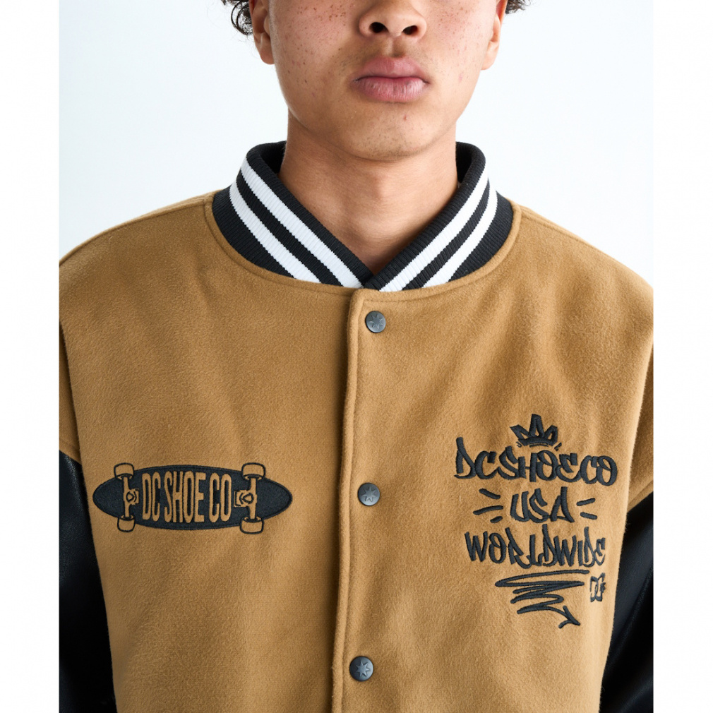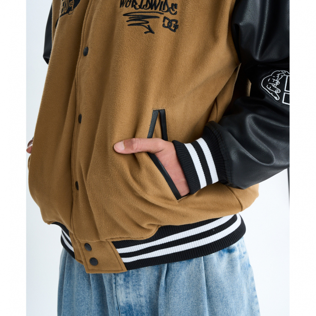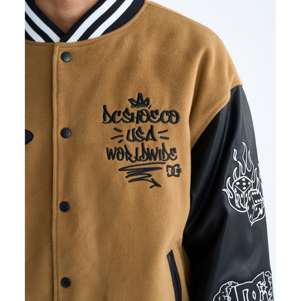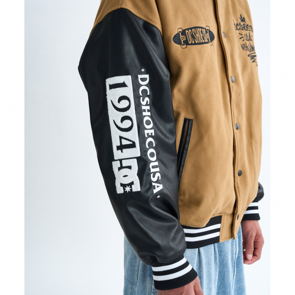 ◇トレンドの90年代アイテムとして取り入れたいスタジャン。胸元や両袖、バックにあしらったタギング調のオリジナルグラフィティがポイント。立体感のあるサガラ刺繍を使い、より印象的に仕上げました。ボディ部分にはメルトン生地、両袖にはシンセティックレザーを使用。裏地にダイヤ型の中綿キルトを使っているため保温性も抜群。