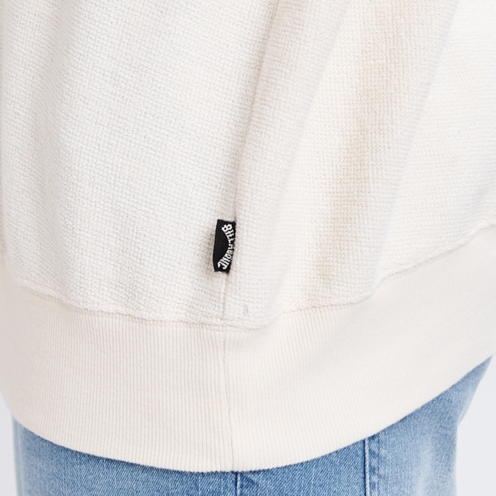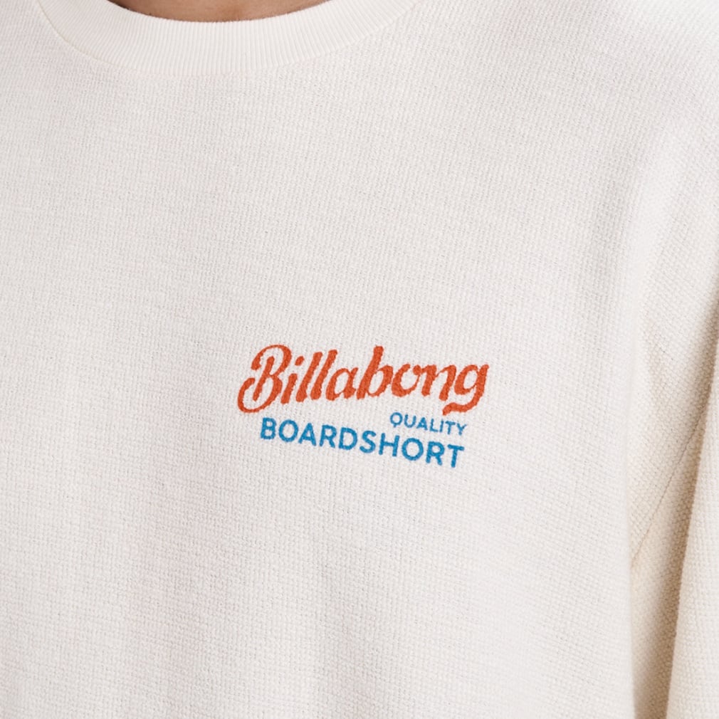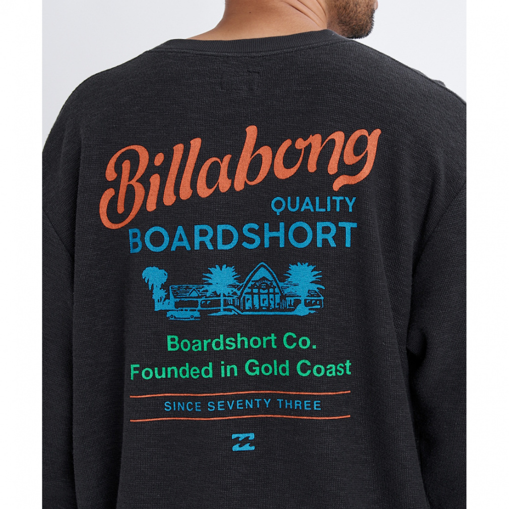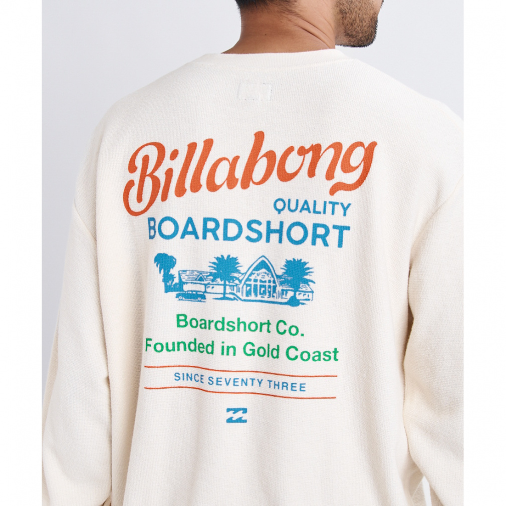 ◇スラブ感のある表面が特長のダブルフェイス生地を使用したクルーネックスウェット。背面にオーストラリアのバーレイ・ヘッズにあるBILLABONGのオフィス兼ショップのグラフィックをプリントしました。シルエットはゆったりとした身幅と着丈のOVER FITを採用。