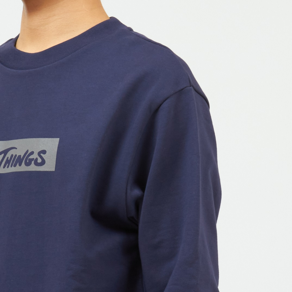 ◇目を詰めて厚みを出しながらも柔らかさを持ち合わ せたヘビーウェイトスウェット。 クルーネックスウェットは程よくゆったりしたリラッ クスシルエットに、着丈を少し短めに設定すること でスッキリした印象に。 フロントには目を引くWILD THINGSのボックスロゴのプリントがあり、表面に綿、裏面に蓄熱保温のポリエステルを使用したオリジナルの新裏毛素材は冬も暖かく着られます。