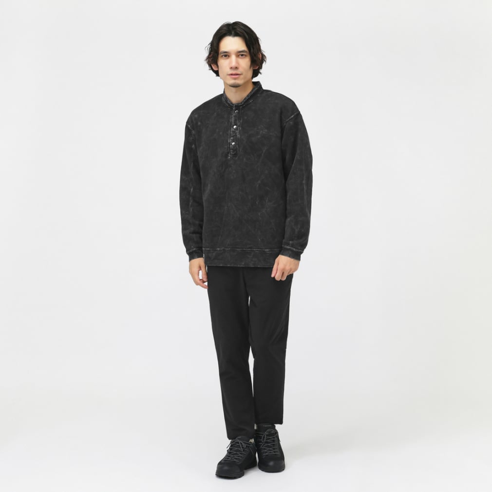 ◇古着のようなフェード感のある風合いが魅力的なピグメント加工を施した裏起毛のハリケーントップ。縫い代などに程良くアタリが浮かび上がり、まるで長い年月を掛けて愛用しているような佇まいのひと品。オーバーサイズのボックスシルエットにスタンドカラーが特徴的。長年変わらないデザインながらも個性が光る、特別感のあるスウェットです。