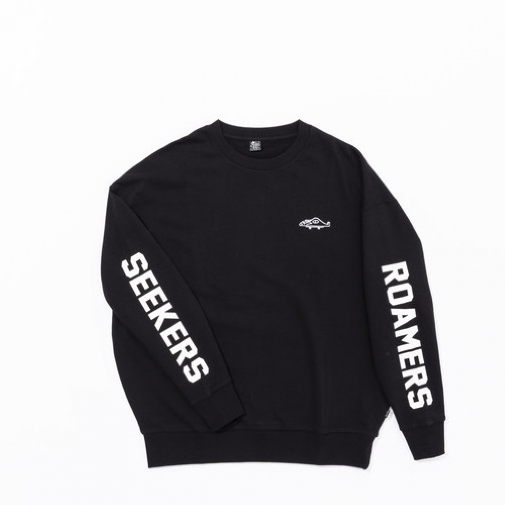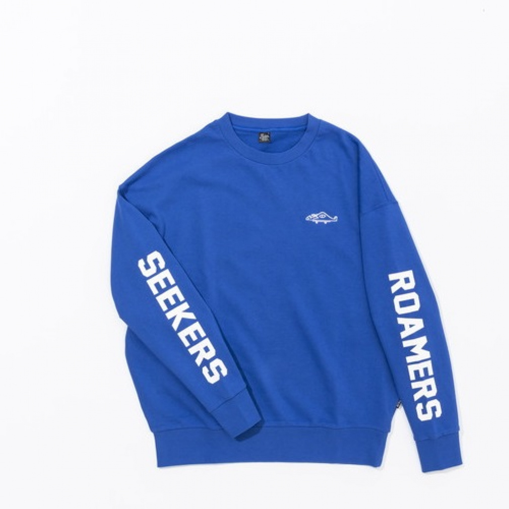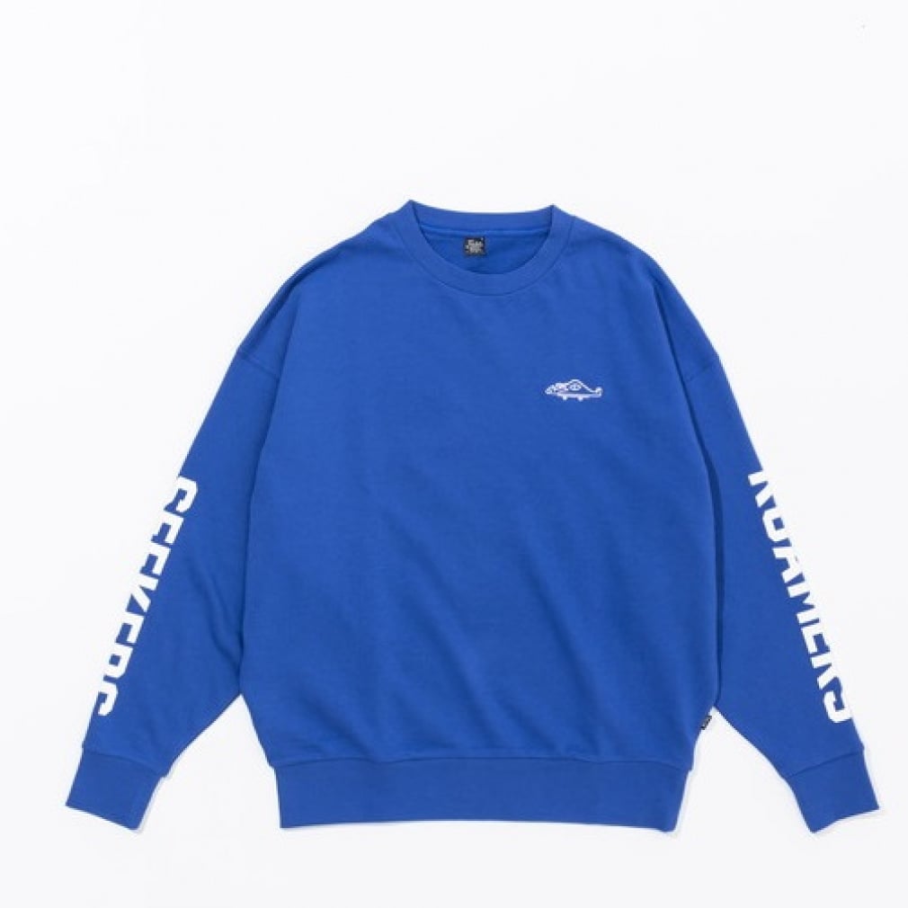 ◇左腕にROAMERS、右腕にSEEKERSの文字があしらわれたクルースウェット。フレンチテリーボディの軽い着心地となっており、デザインも相まってロンT感覚で着こなすのがオススメ。左胸にあしらった可愛らしい刺繍もポイント。