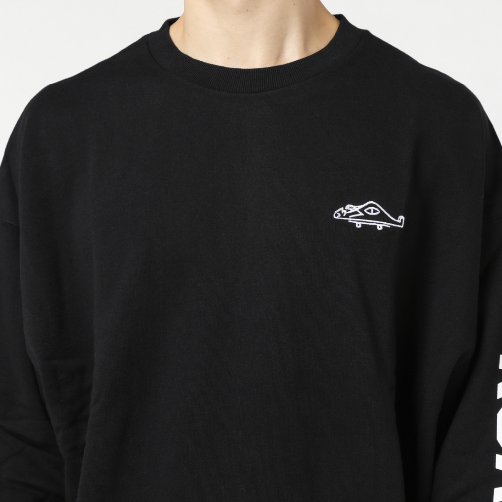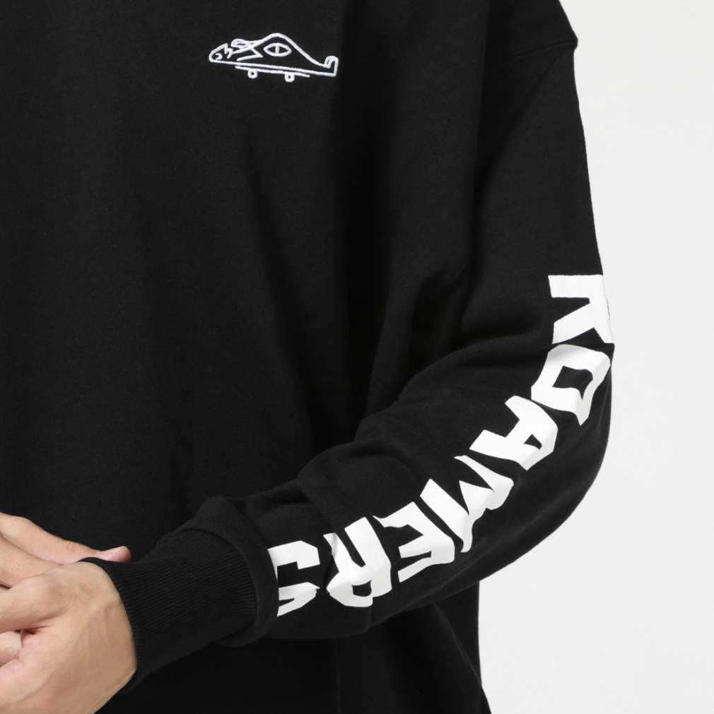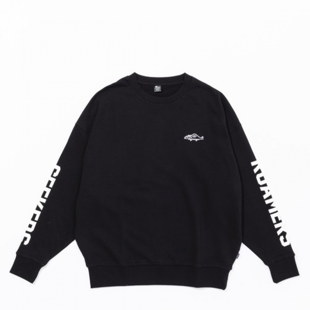 ◇左腕にROAMERS、右腕にSEEKERSの文字があしらわれたクルースウェット。フレンチテリーボディの軽い着心地となっており、デザインも相まってロンT感覚で着こなすのがオススメ。左胸にあしらった可愛らしい刺繍もポイント。