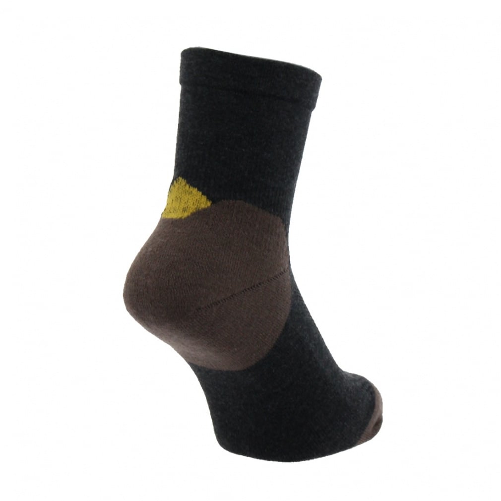 ◇爪先~くるぶしまでクッション性のあるパイル編みをし、甲部はメッシュ編みにして通気性を高めたテクニカルなミッド丈のパイルモデルです。ブーツ等で摩耗しやすい かかと にはナイロン糸で補強し、アウトドアでも活躍するソックスです。