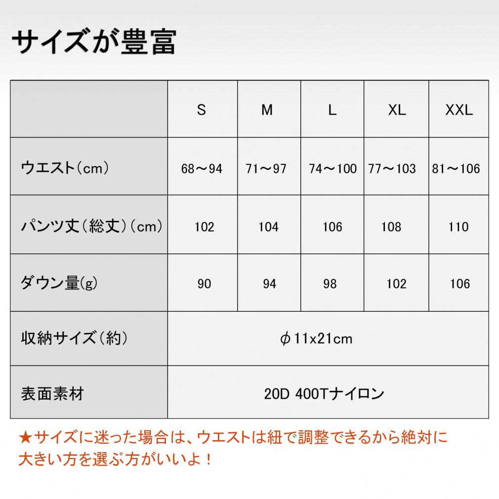 ダウンパンツ 800FP ポケット有