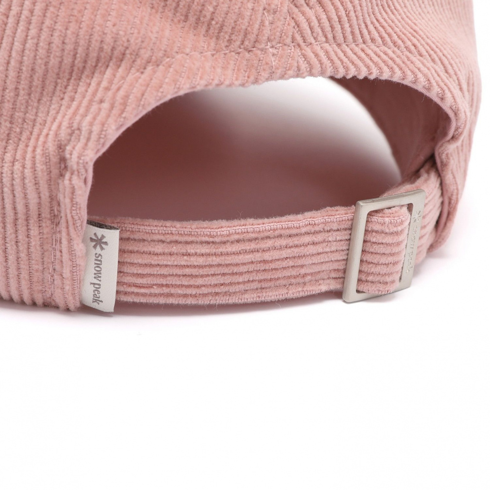 ◇帽子の前面にはトーンオントーンの刺繍ロゴを施し、落ち着いた高級感を演出。バックストラップにはスノーピークのロゴ入り日の字型金属バックルを使用し、後ろ姿にもさりげないアクセントをプラスしています。柔らかな肌触りと温かみのある雰囲気のコーデュロイ素材を採用し、デイリーにも取り入れやすいベースボールキャップです。