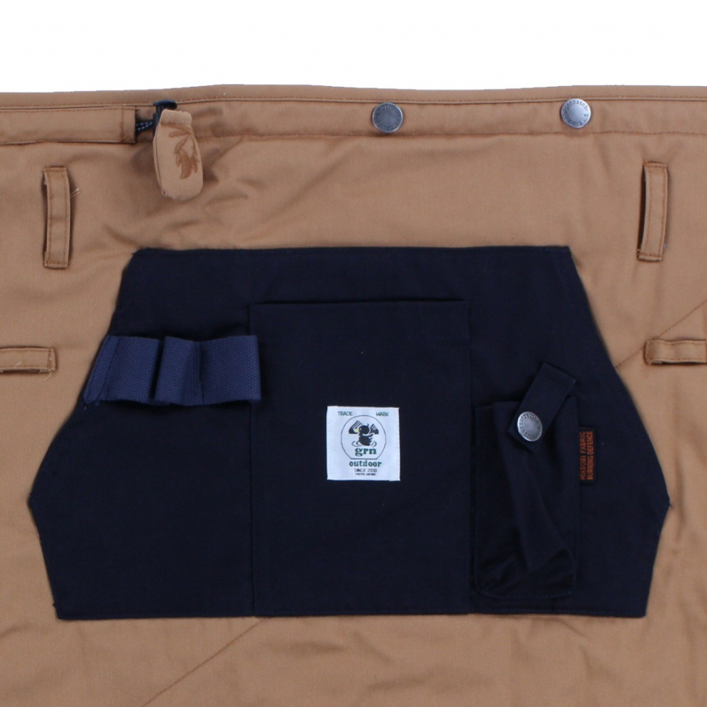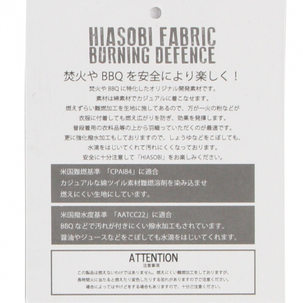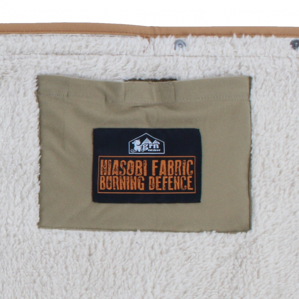 ◇独自開発の難燃素材「BURNING DEFENCE」を表生地に使用しています。裏地はボアフリースになので、肌寒い時に巻きスカートのように腰に巻いて使えるデザインが嬉しい仕様。穴をあけたくないパンツを焚き火の火の粉から守ってくれます。また、ブランケット状態で使えばギアを守るのにも使えますし勝手の良い1品です。HIASOBIシリーズには欠かせない「SOTOスライドガストーチ」専用ポケットも健在。2トーンの火の前で映える配色感が一層焚き火シーンを盛り上げてくれることでしょう。