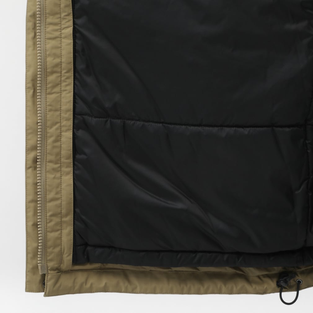 ■素材:表地/Recyceld Nylon Cloth 2L(2層)(表側/ナイロン100%、裏側/ポリウレタンコーティング)、裏地・インナー/Nylon Taffeta(ナイロン100%)、中わた/HEATSEEKER(ポリエステル100%)