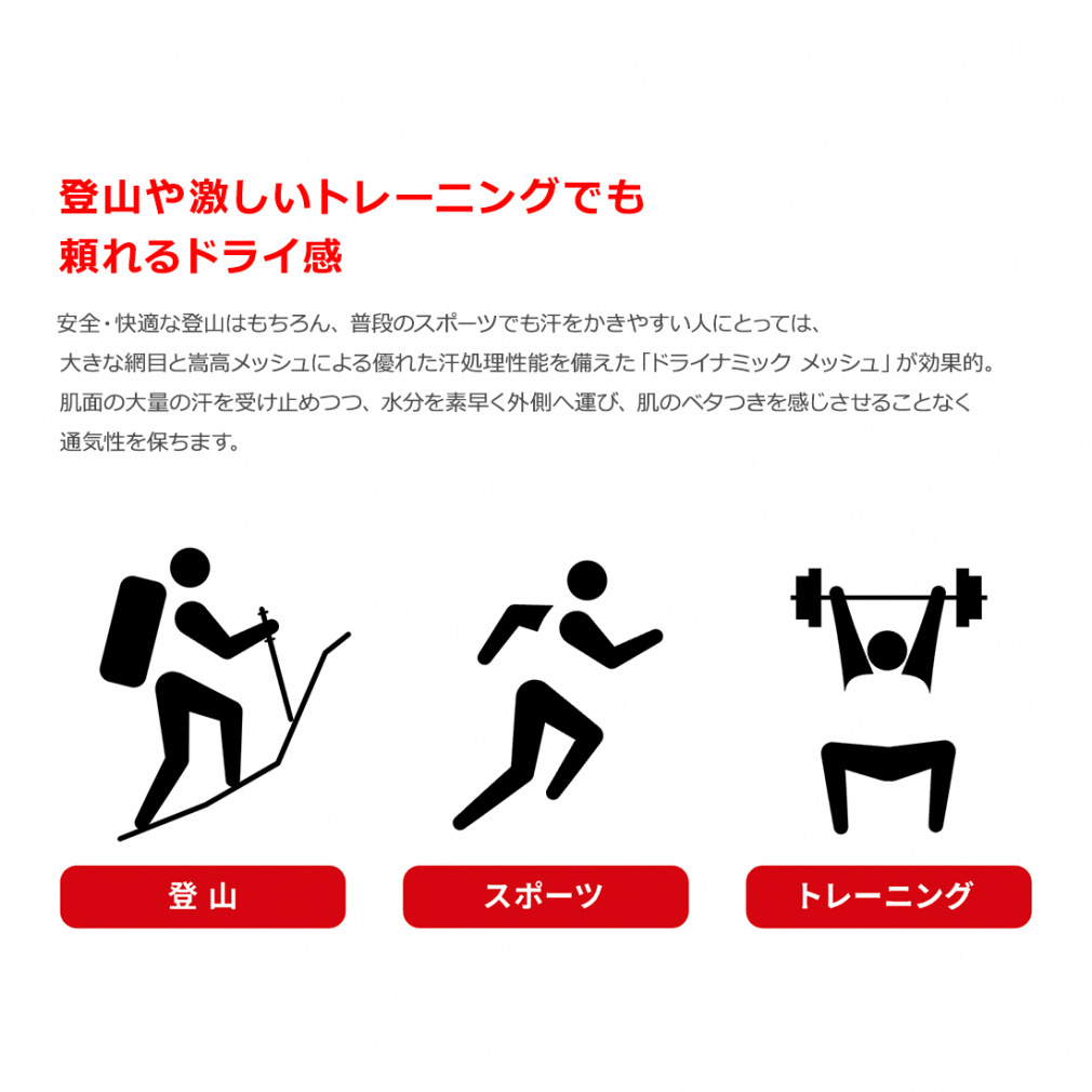 ■素材:ドライナミック メッシュ ポリプロピレン66% ナイロン28% ポリウレタン6%