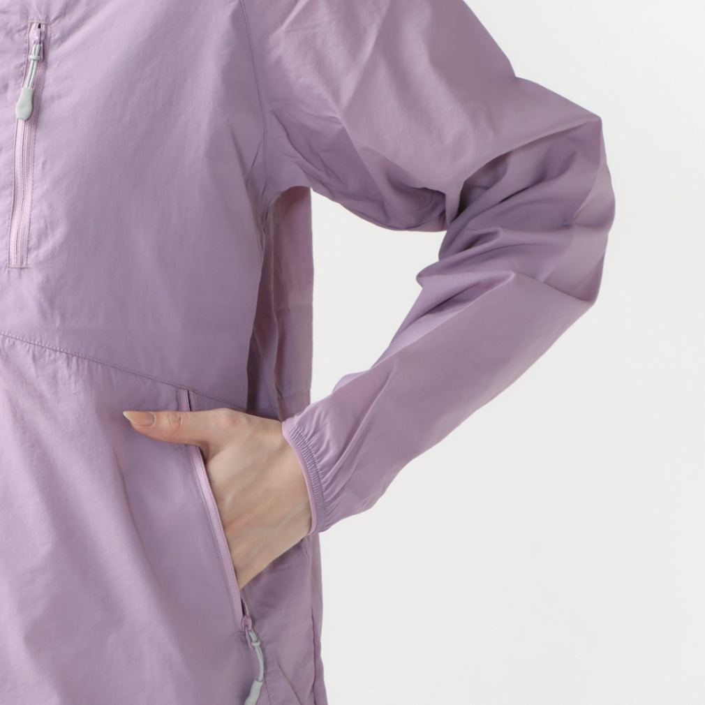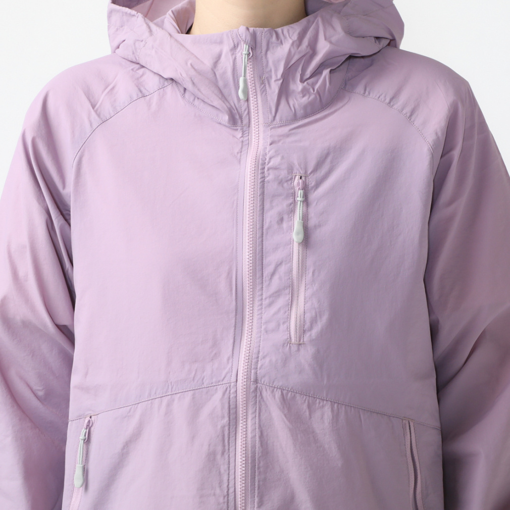 ◇撥水性と軽量コンパクト性を併せ持つウインドシェルジャケット。携行に便利なポケッタブル仕様を採用し、登山・トレッキングからハイキングまで幅広い場面で活躍します。ファスナーがあごに当たらないチンガード仕様。裾はドローコード仕様で調節可能。紫外線保護指数最高値UPF50+で紫外線カット率95%以上。