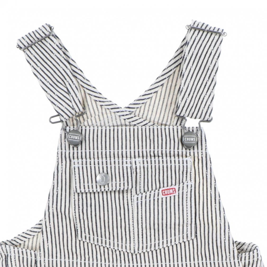 ◇カジュアルライクなショート丈のオーバーオール。ウエストまわりは開閉しやすいスナップボタンなのでお子様でも着脱しやすい仕様。肩紐の長さは調整できます。大人サイズのデニムアイテムとリンクコーディネイトを楽しめるアイテム。デイリーユースはもちろん、キャンプなどアウトドアシーンでも大活躍!
