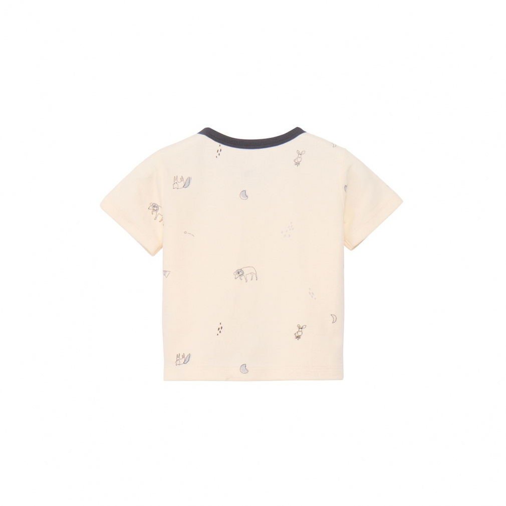 ◇風合いのよいオーガニックコットンを使用した、パイル地の半袖Tシャツ。短いパイル地を採用しており、通常のループの長いパイル地に比べて引っ掛かりにくくなっています。生地には適度な厚みがあり、優しく包むような肌触り。汗をしっかりと吸い取りやすいのも特徴です。脱ぎ着がしやすいよう、左肩ドットボタン仕様。左胸にはロゴワッペンを配置し、デザインのアクセントとなっています。