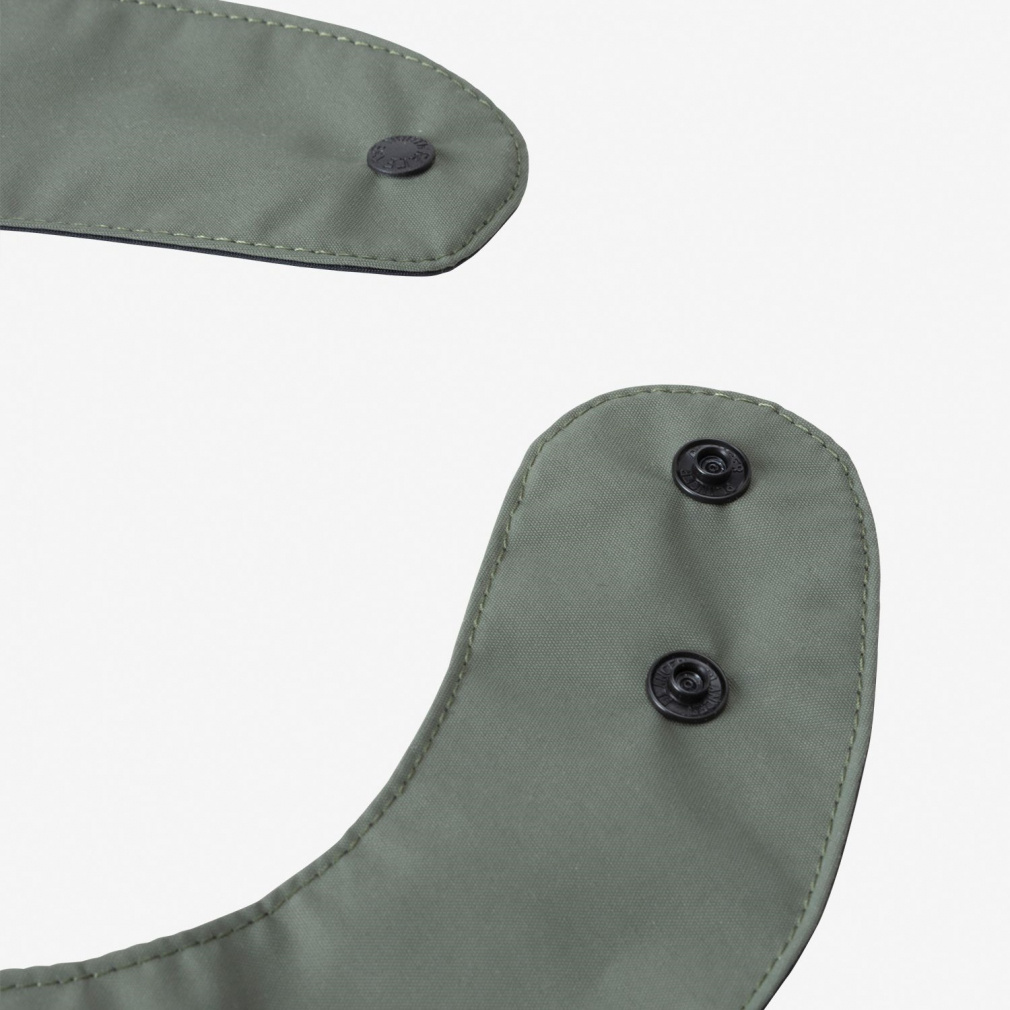 ◇コンパクトに収納できて持ち運びに便利な、防水素材のベビー食事用エプロン。裾のドットボタンを留めると、食べこぼしを受けるポケットが組み上がる仕様です。ドットボタンをはずせば1枚の平たい布状になるので、洗濯しても乾きやすくイージーケア。乾きやすさを高めるため、裾はバインダーなしに仕上げています。くるくる丸めて裾のボタンで留めれば筒状に収納可能。キャンプなどアウトドアでの飲食時に活躍するアイテムです。