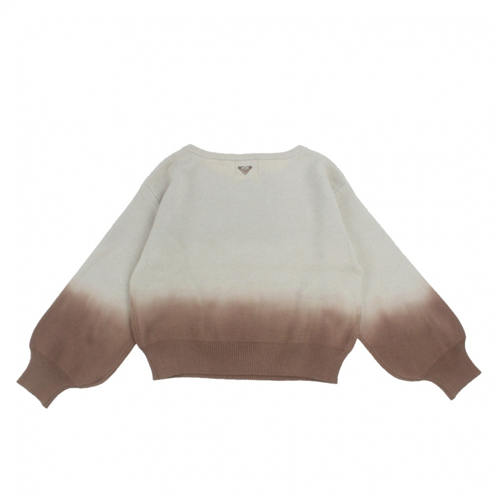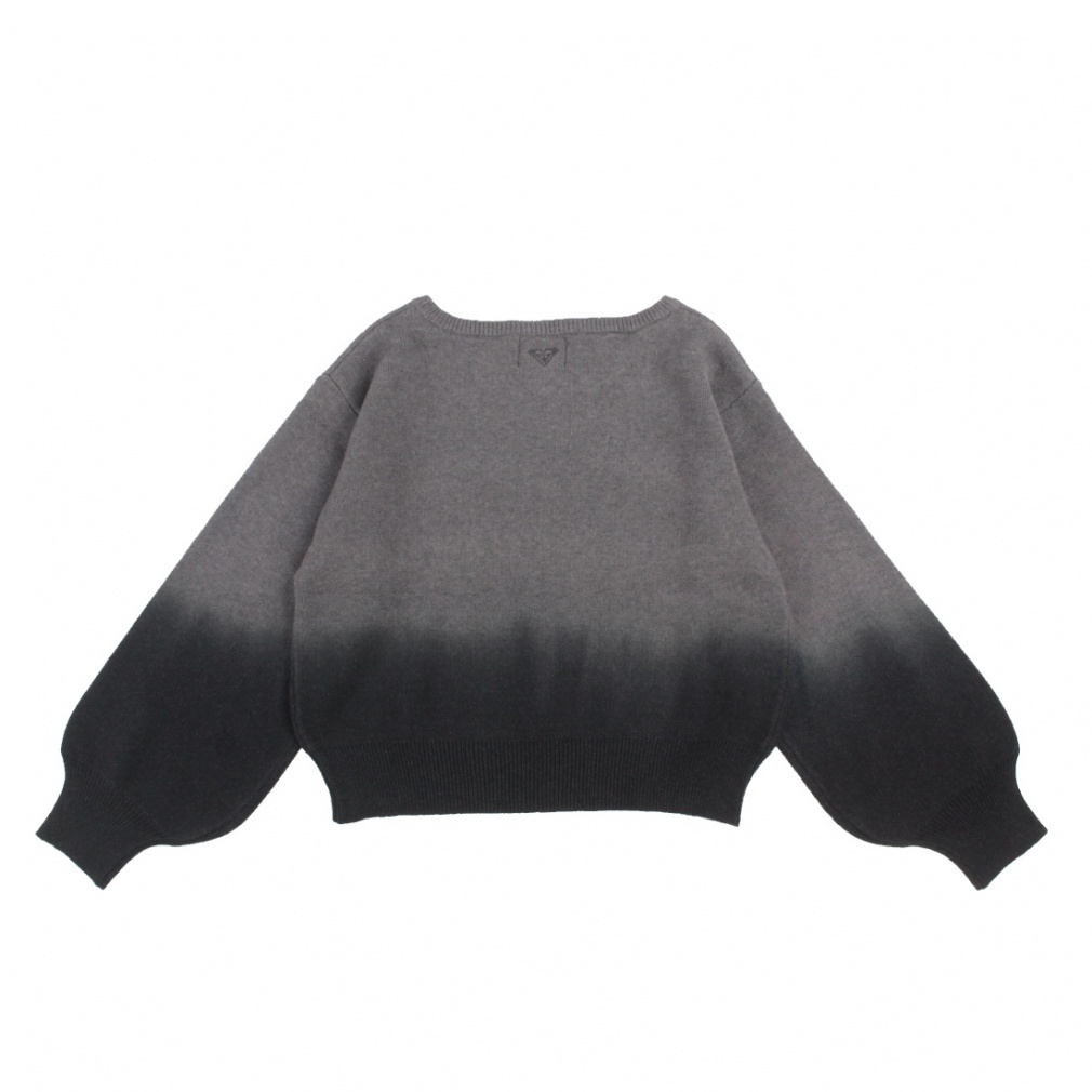 ◇もっちりとした素材感が気持ちよいオフショルダーのニットトップス。オフショルダーとしても着用でき、ロゴ部分はシャギー糸を使用しました。グラデーションの染めとボリュームのある袖口がアクセントで、ネックバックにROXYハートをあしらいました。