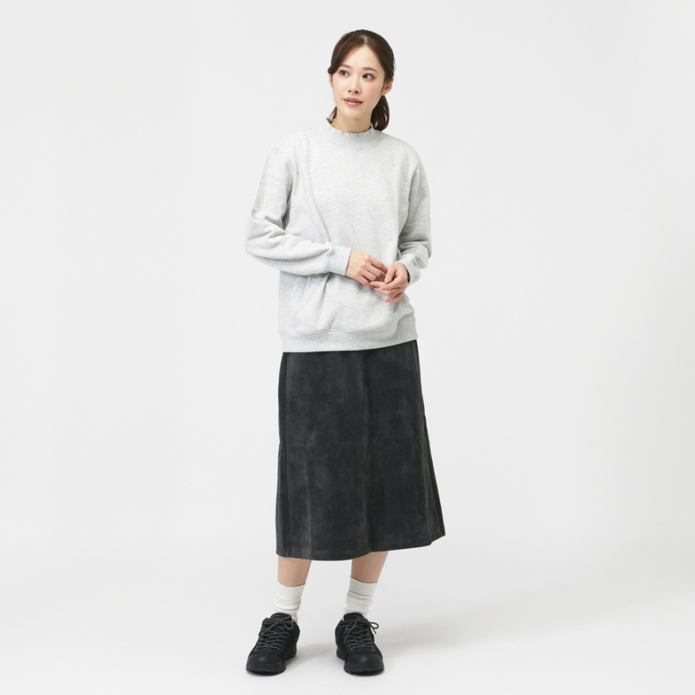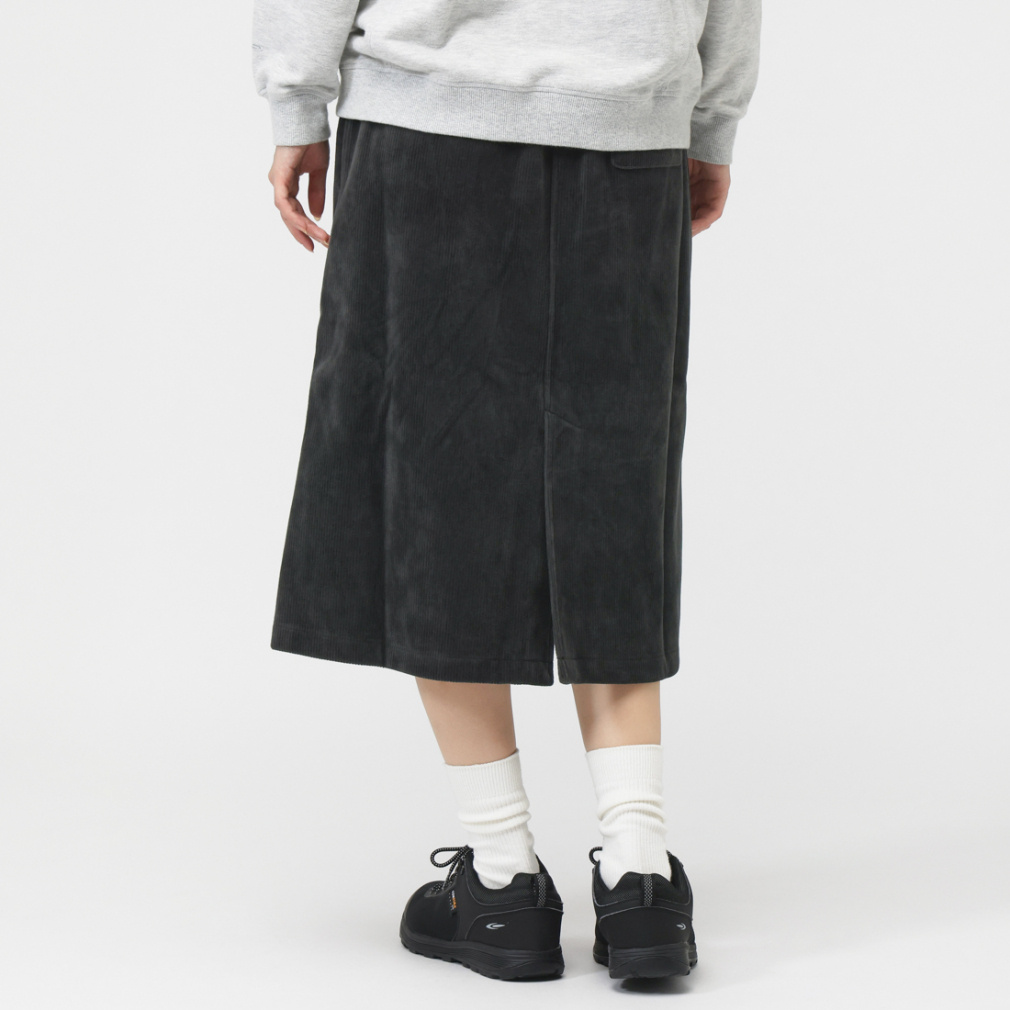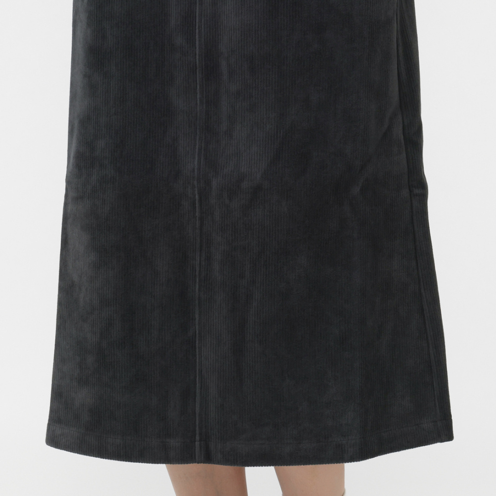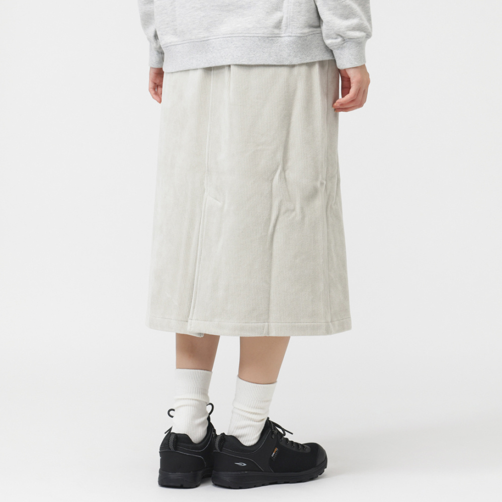 ◇スリムなシルエットを演出する細かなリブパターンのスカート
