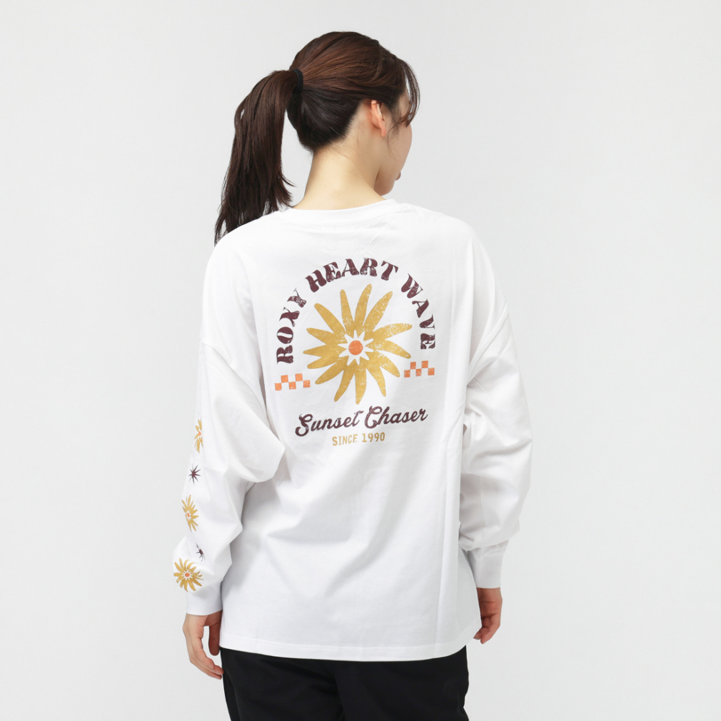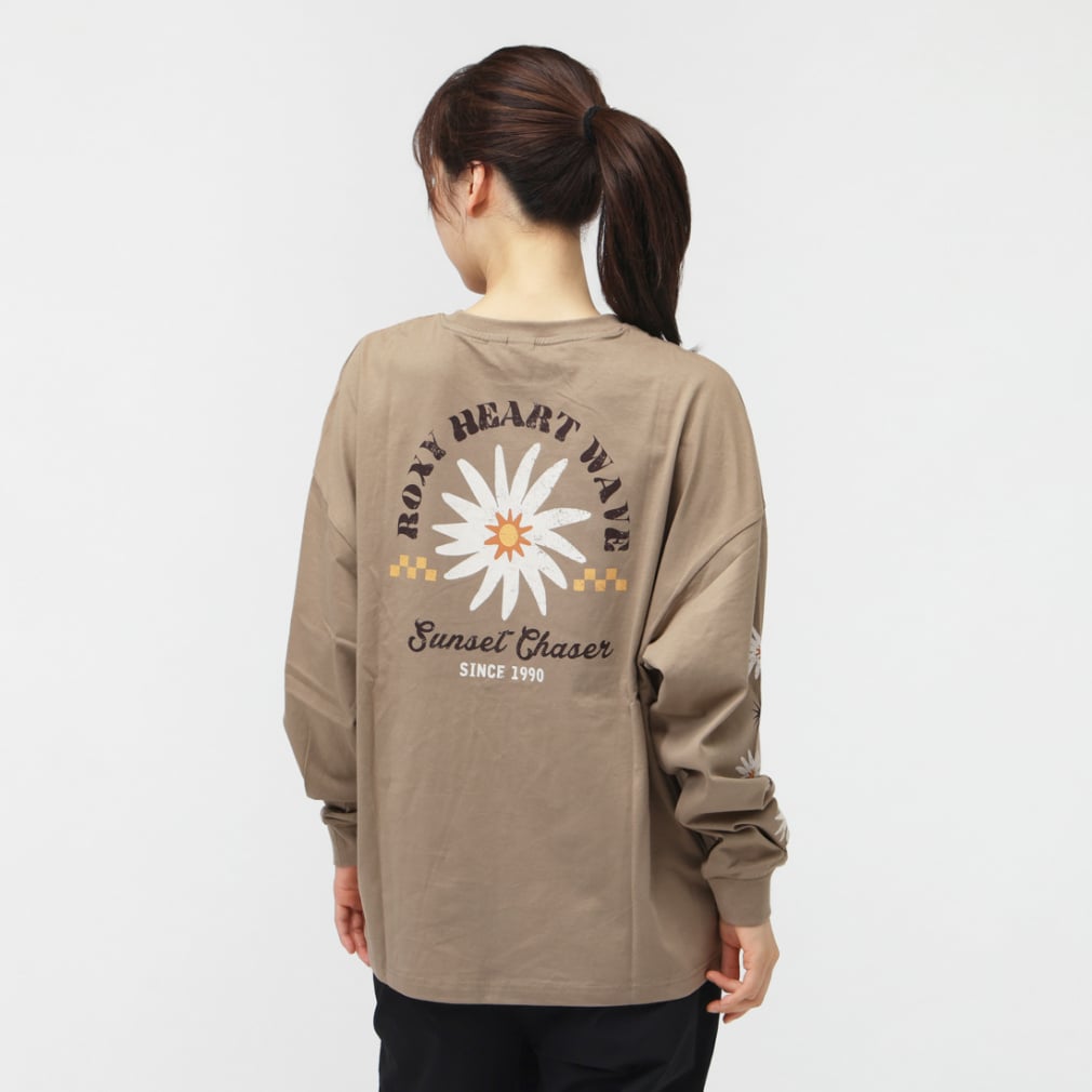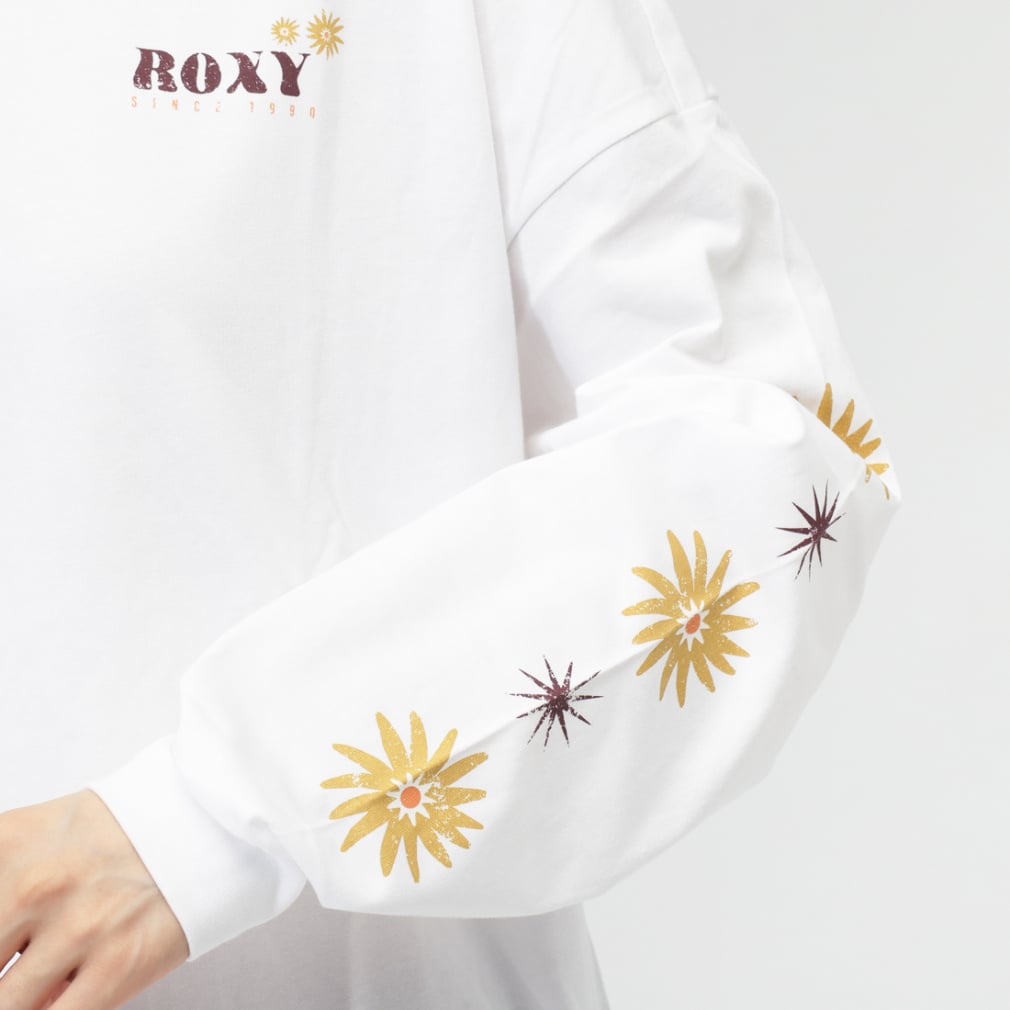 ◇ゆったりシルエットで少しワイドな袖が特徴のロングスリーブトップス。バックにはフラワーモチーフのグラフィックとメッセージを大きくプリントし袖にもフラワーモチーフをあしらいました。一枚でサッとスタイリングしてもサマになる一着です。袖口はリブで仕上げています。