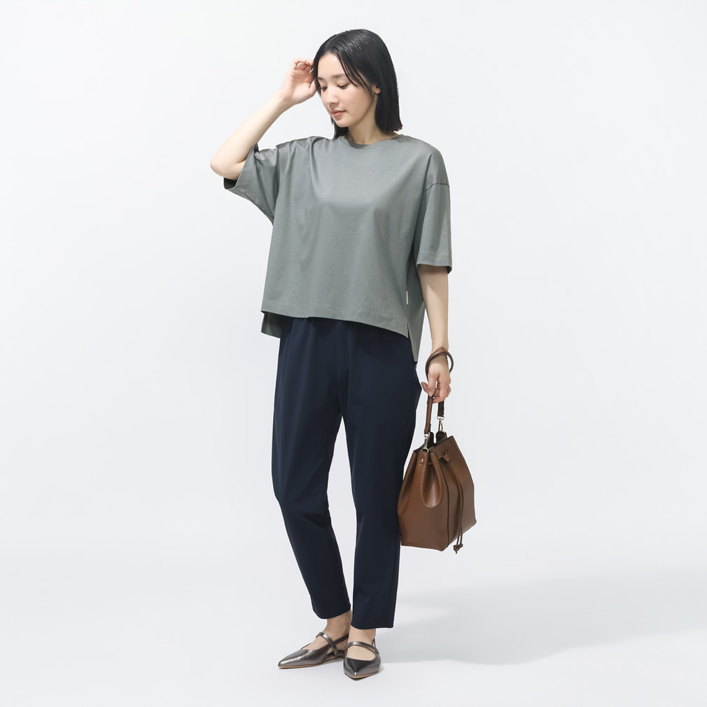 キレイ目なコーディネートにも使いやすく高見えするTシャツです。