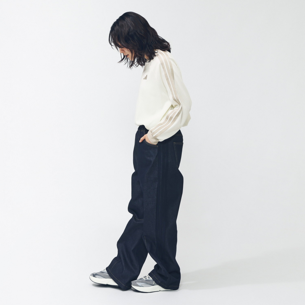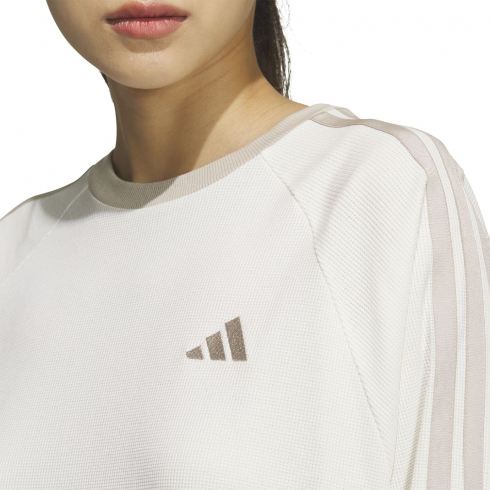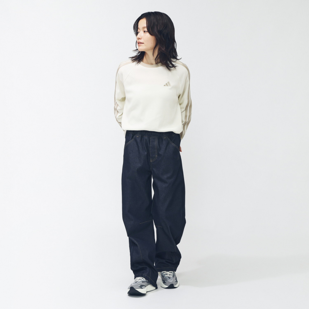 ◇快適さとスタイルを重視する人のためにデザインされた、ワッフル スリーストライプス オーバーサイズフィット ロングスリーブTシャツ。