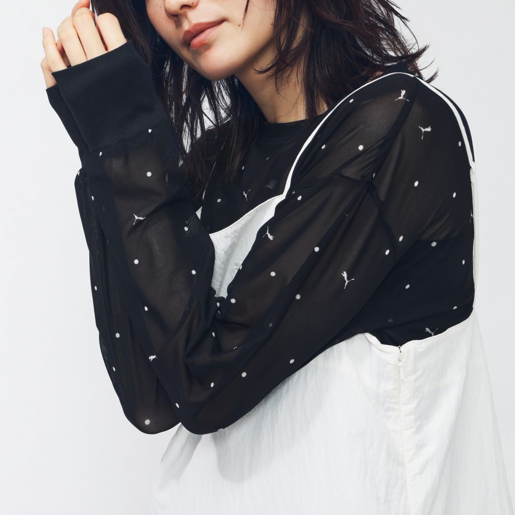 AUTUMNコレクションから、トレンドのシアー素材を使った長袖Tシャツです。