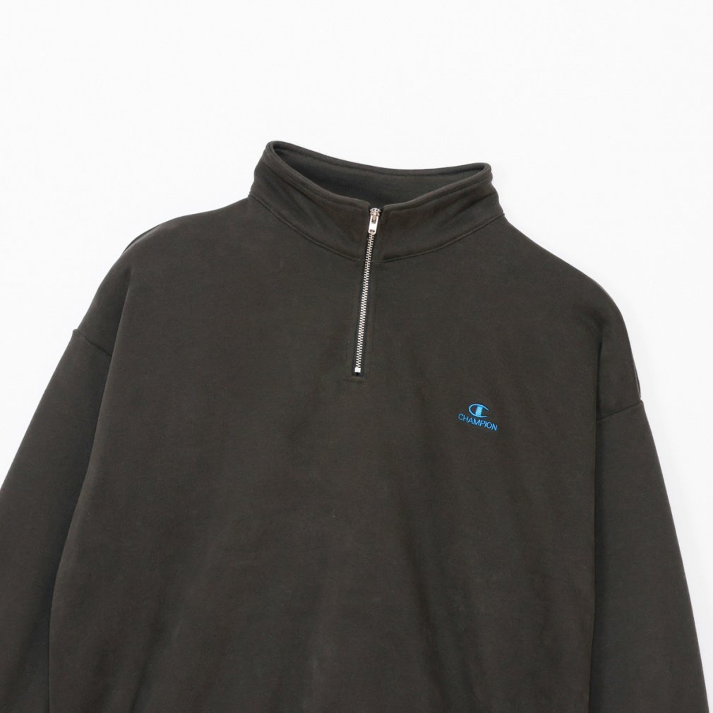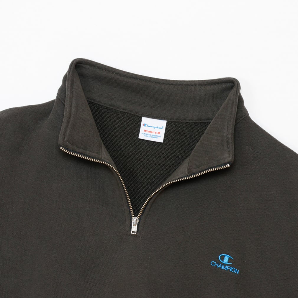 環境に配慮して生産されたサステナブルなアメリカ綿とリサイクルポリエステルを使用した、裏毛素材のハーフジップスウェットシャツです。