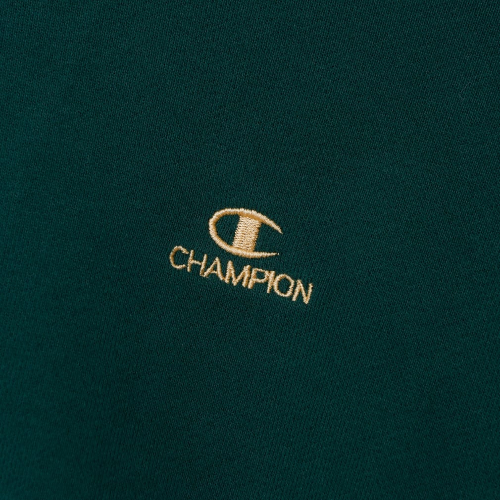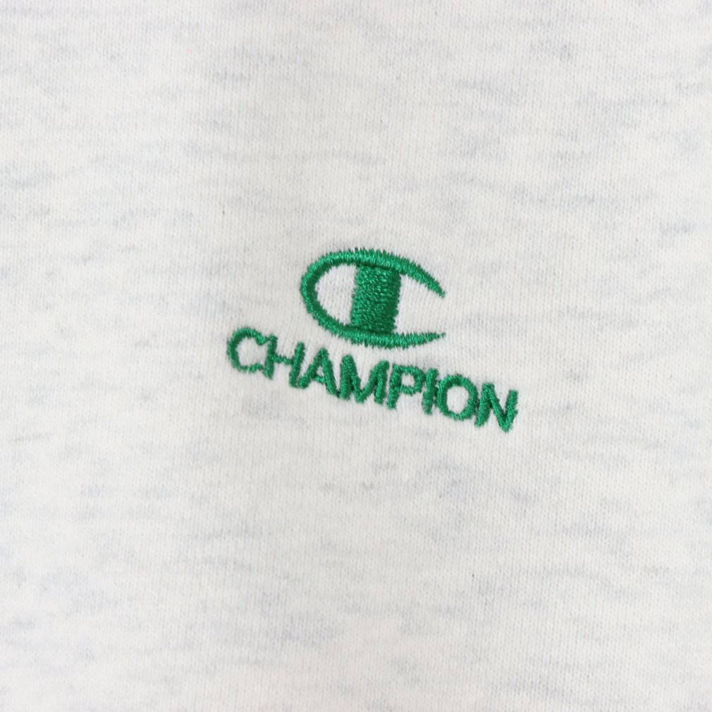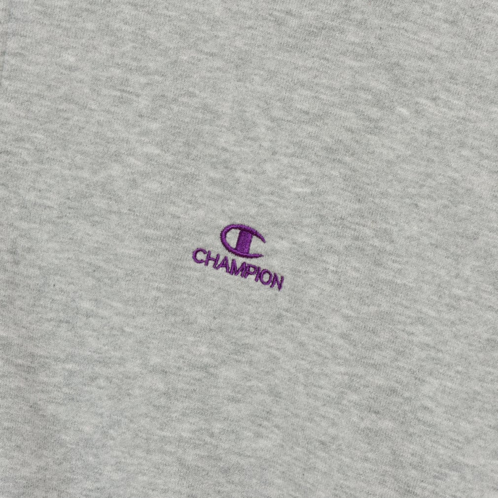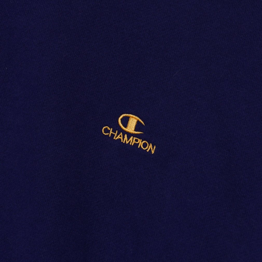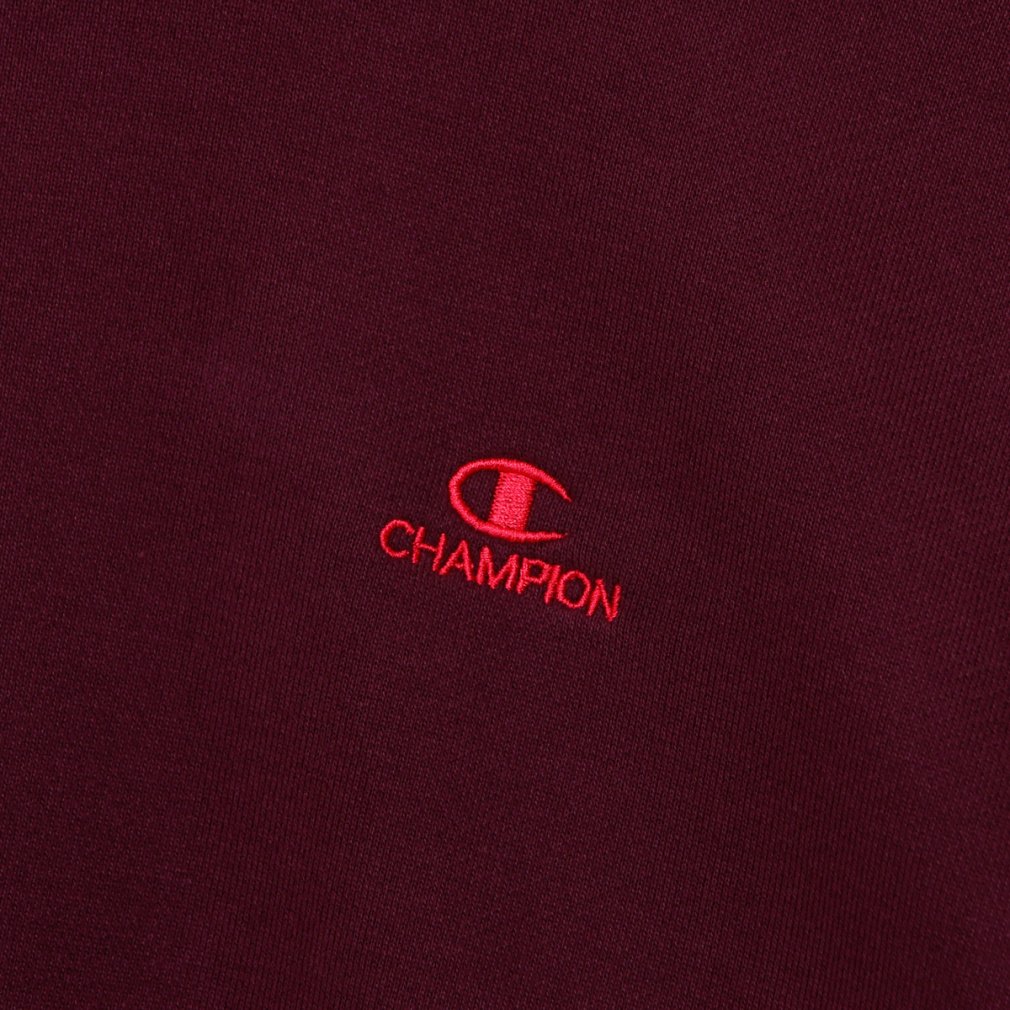左胸にはボディカラーごとに異なる色のCロゴと、細いブロック書体による「CHAMPION」の刺繍入り。