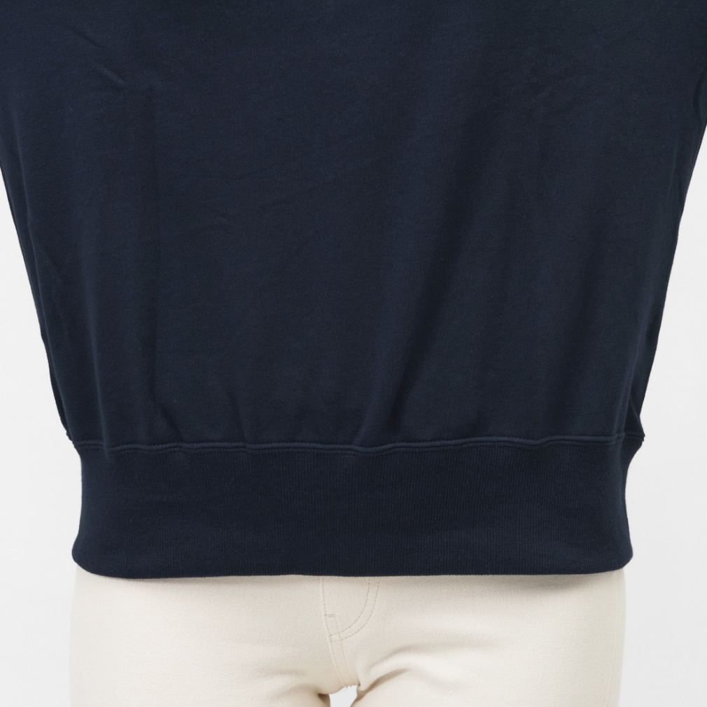 環境に配慮して生産されたサステナブルなアメリカ綿80%とリサイクルポリエステル20%のライトな裏毛素材を使用。