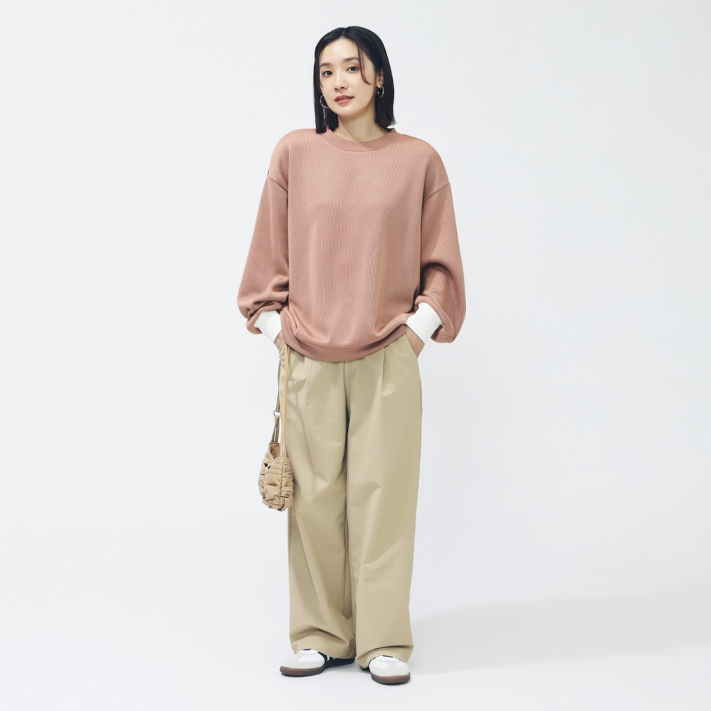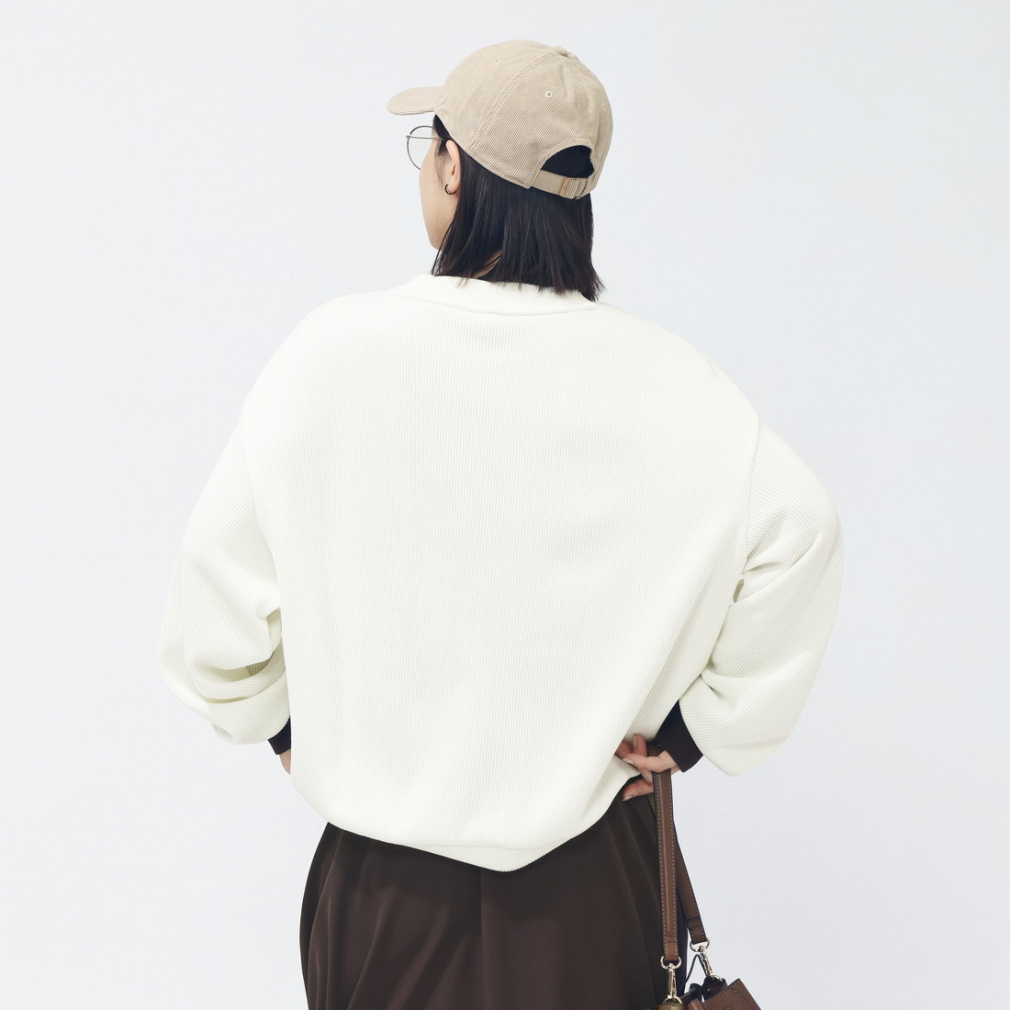 ダブルニットファブリックを使用し、ゆったりとしたオーバーサイズで、暖かさにやさしく包み込むような着心地。
