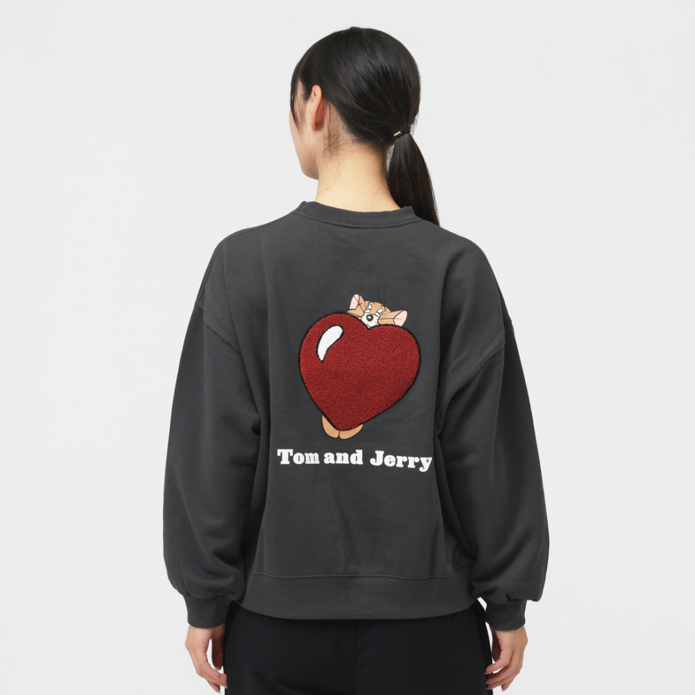 Tom and Jerry バックグラフィックトレーナー ハート(ダークグレー-S)