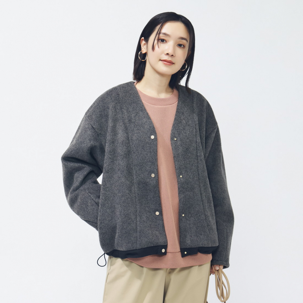 ◇暖かい普段着としての機能とスタイリッシュなルックスを両立したデザインのカーディガン。