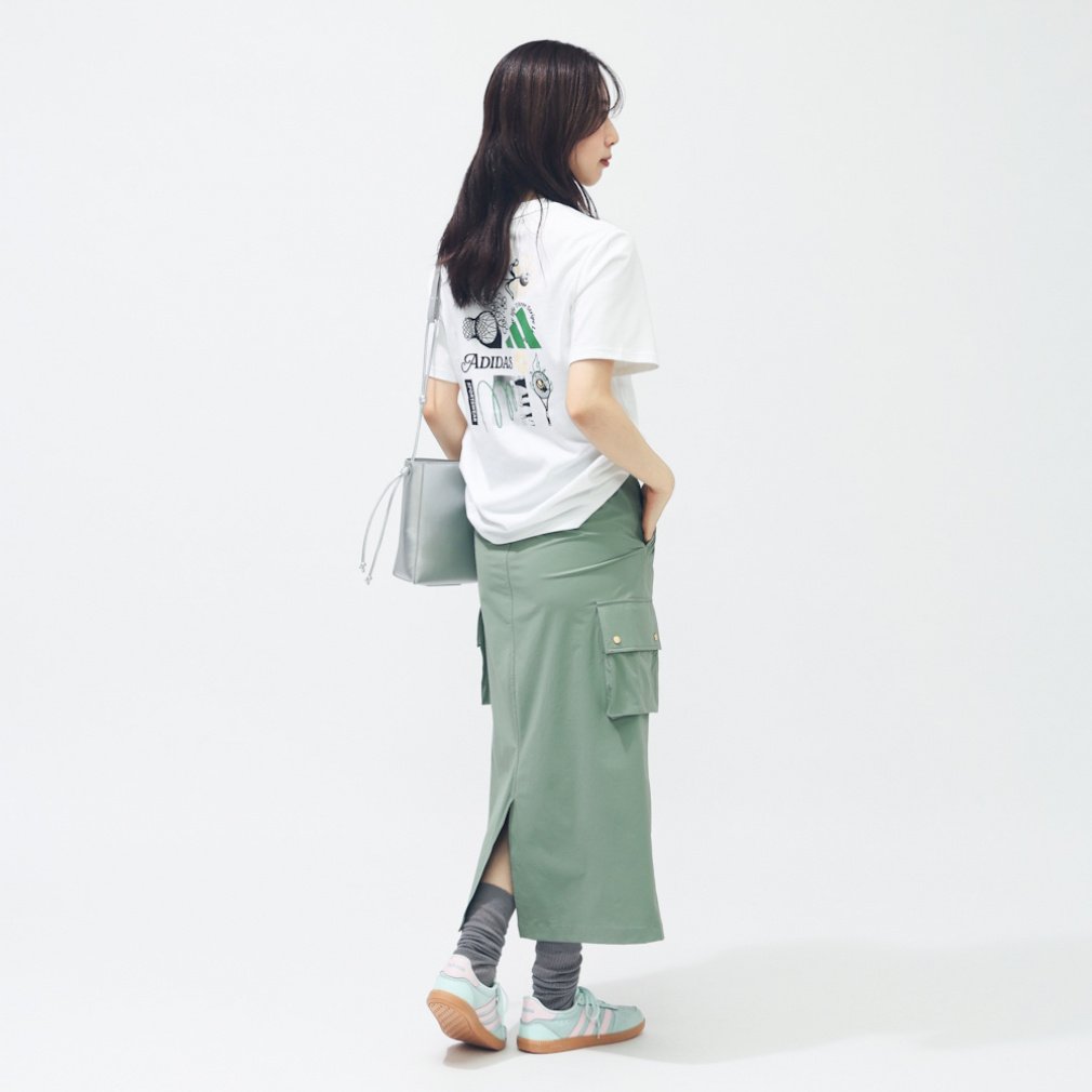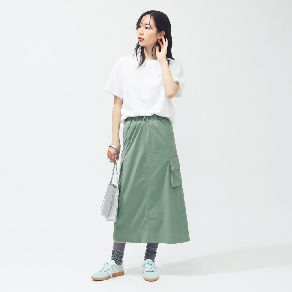 ◇気楽に着こなせるエフォートレスなスタイルの、アディダス カーゴスカート。