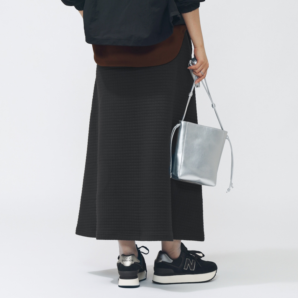 ◇キルティングニットのニットスカート。